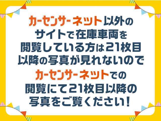 保証 | 保証付 詳細については、販売店にご確認ください。 保証期間:1年 保証距離:無制限 【1年間・走行距離無制限のあんしん保証】 中古車という商品特性上、故障のリスクが伴います。 当店では最も重要なエンジン本体関係について1年間・走行距離無制限で保証致します。(別途料金にて保証内容をグレードアップも可能) また、全国のディーラーで保証修理が受けれるため遠方の方にも安心してお買い求めいただけます。免責期間などありますので詳しくはスタッフまでご相談ください。 |