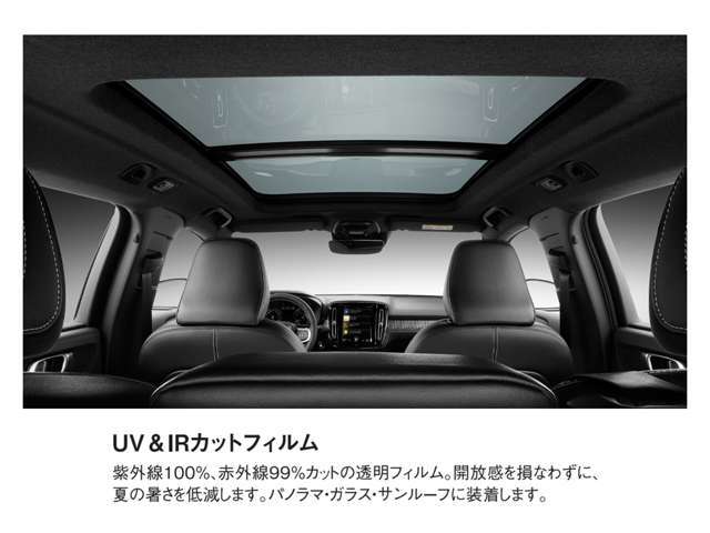補足 | - | 紫外線100%、赤外線99%カットの透明フィルム。開放感を損なわずに、夏の暑さを低減します。パノラマ・ガラス・サンルーフに装着します。 | 認定中古車保証期間満了後に2年の保証期間を追加!さらに、「延長保証 PREMIUM GUARD」が自動付帯されます。 |