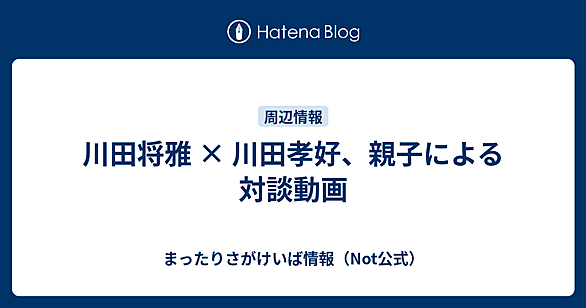 川田将雅とは スポーツの人気・最新記事を集めました - はてな