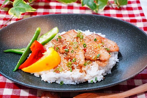 上質な豚肉を、甘辛いタレでつけやき(orてりやき)にしたものを、丼にして供する料理。