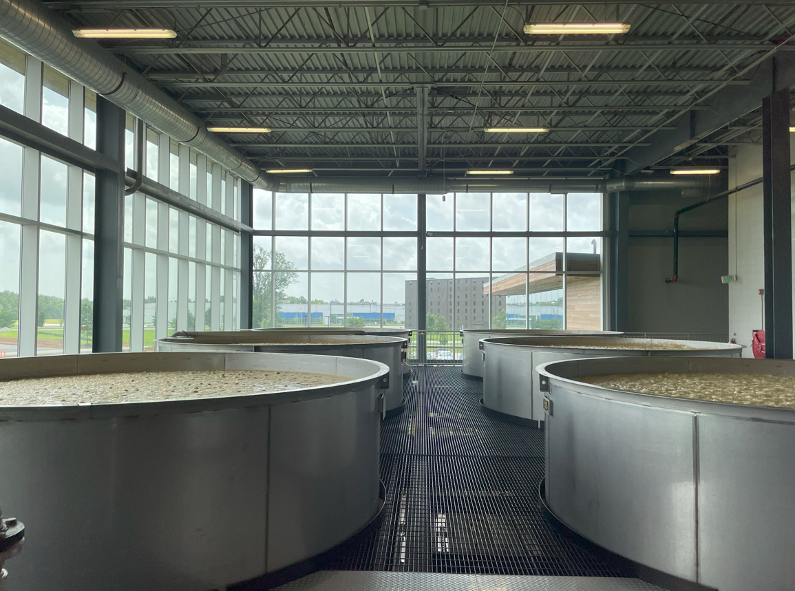 糖化工程の隣に発酵工程があります。8つの発酵槽がありどれも稼働中でした(発酵工程は3日間とのこと)。