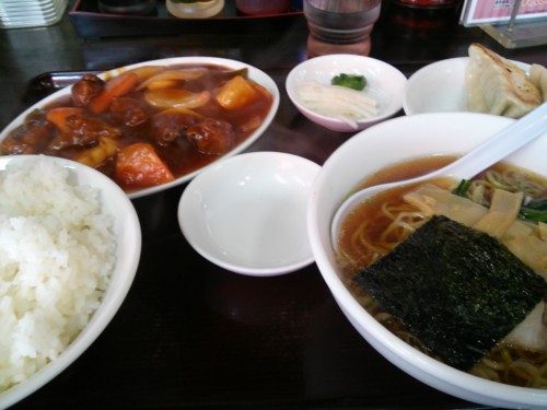 [東京亭][ラーメン]しょうが焼きラーメン餃子セット(餃子後から)@東京亭