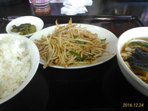 [ラーメン][東京亭]もやしと肉の炒めラーメン餃子セット@東京亭