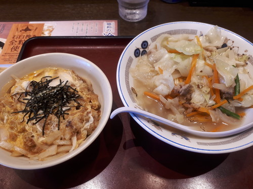 [山田うどん][丼][ラーメン]タンメン、ミニ玉子丼