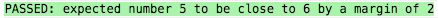 Passed test indicates that num will be greater than data - margin and less than data + margin.