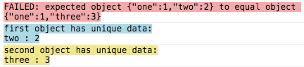 Failed isEqual() tests will call console.diff() if both inputs are objects or both are arrays.