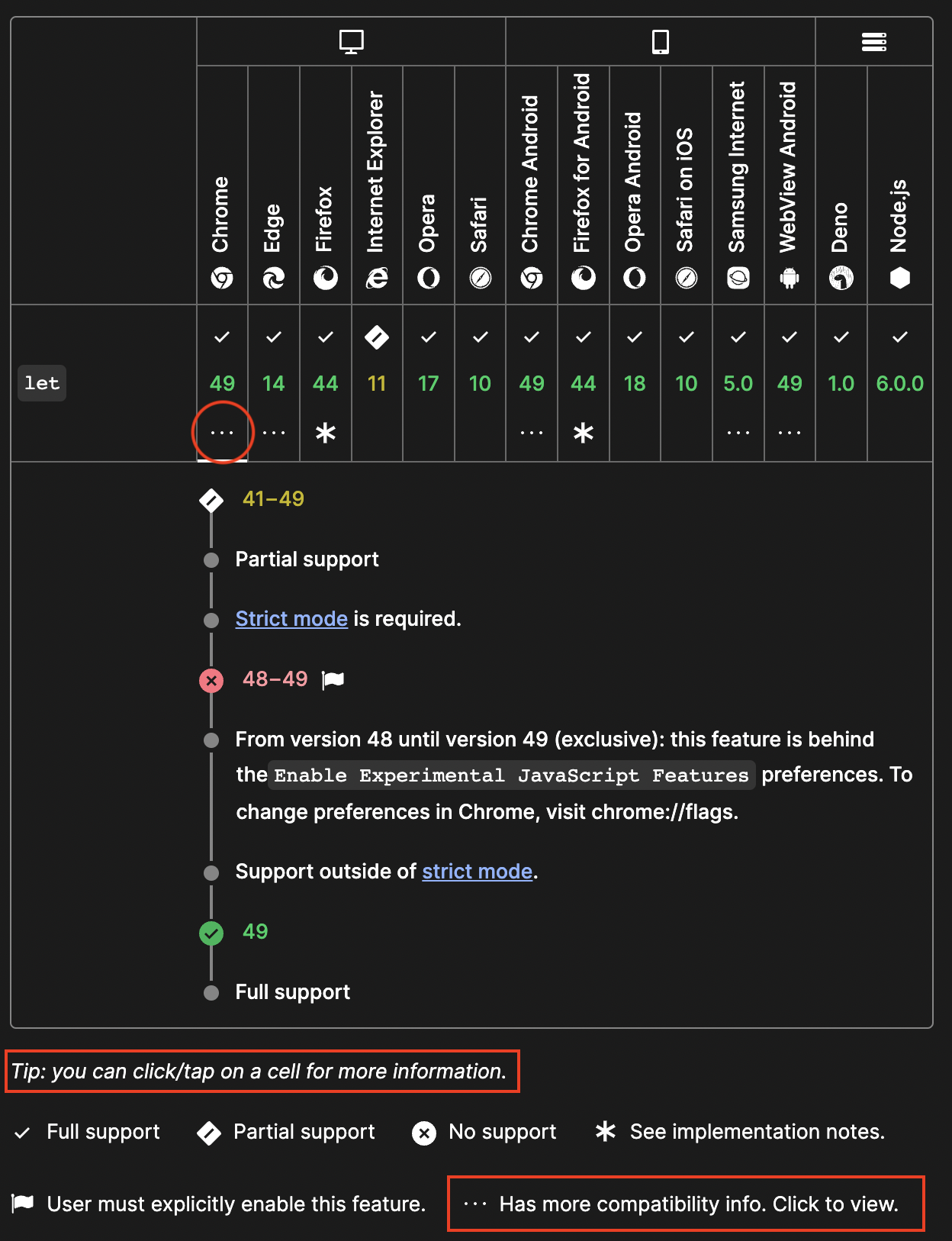 After the MDN redesign, it has become unclear that BCD table cells can be clicked on. This PR updates the compatibility table rendering to clarify that there is more data available upon a click in two ways: