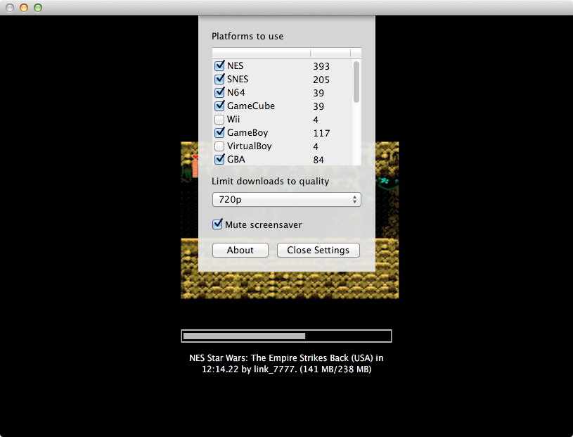 A Mac OS X Screensaver - Shows people doing speedruns as your screensaver.
