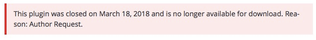 - 作者からの依頼 – 作者がプラグインをクローズするよう要請しました。