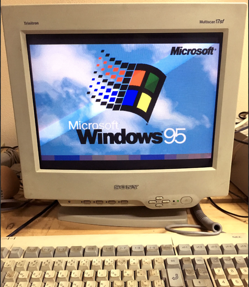まぁモニターは立方体ではなく平たい形状なんですけど画面が真四角に近くて、キーボード含めてイマドキこれ?って感じのPCです。