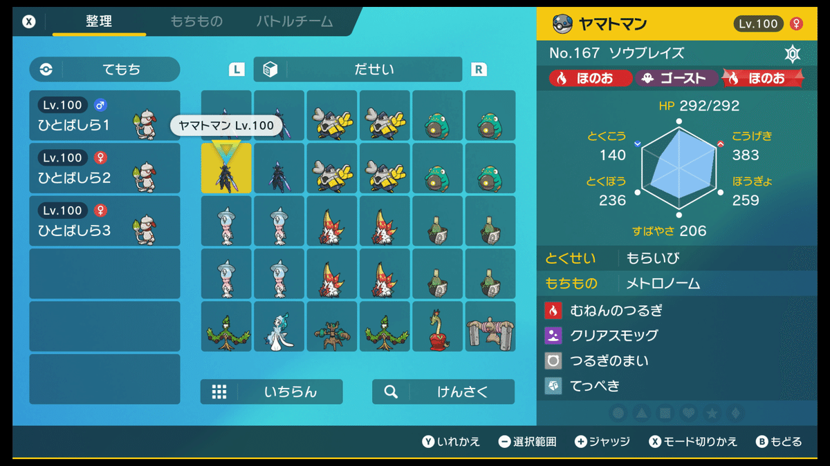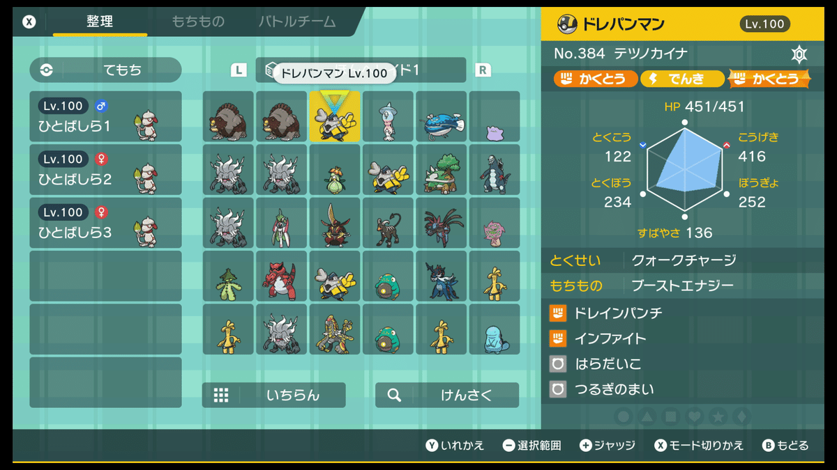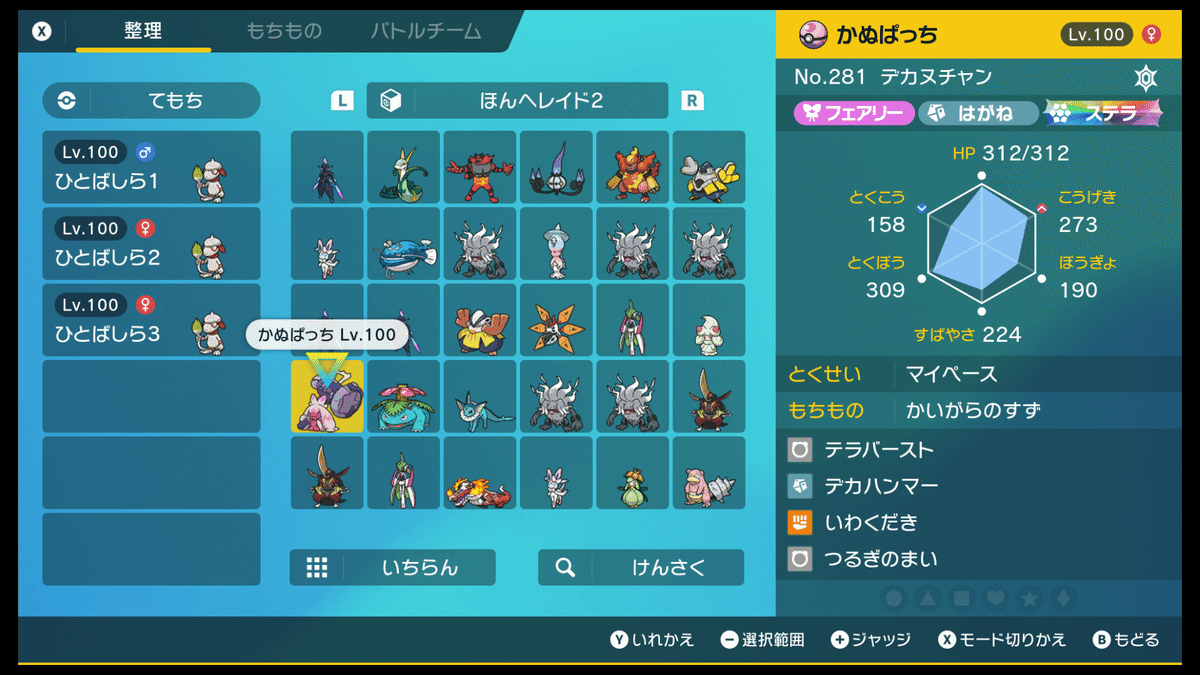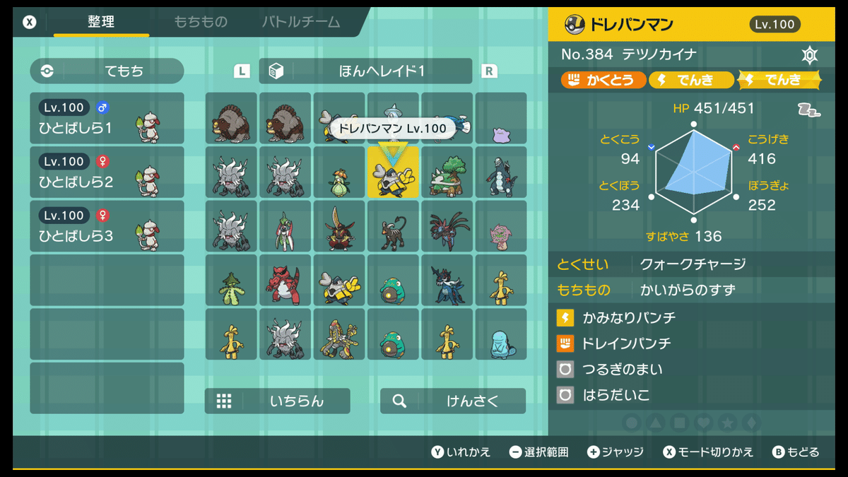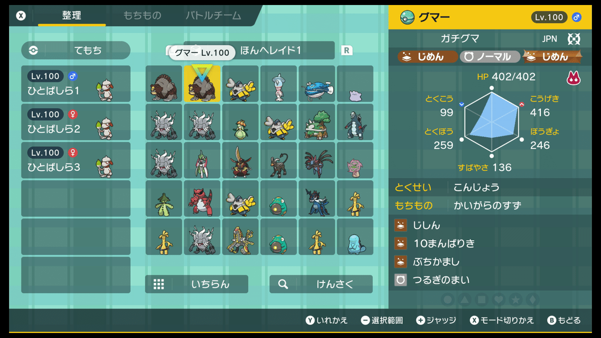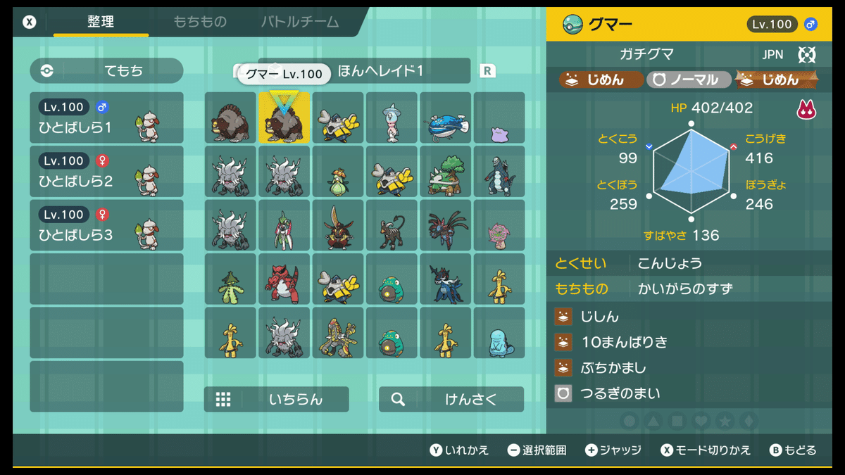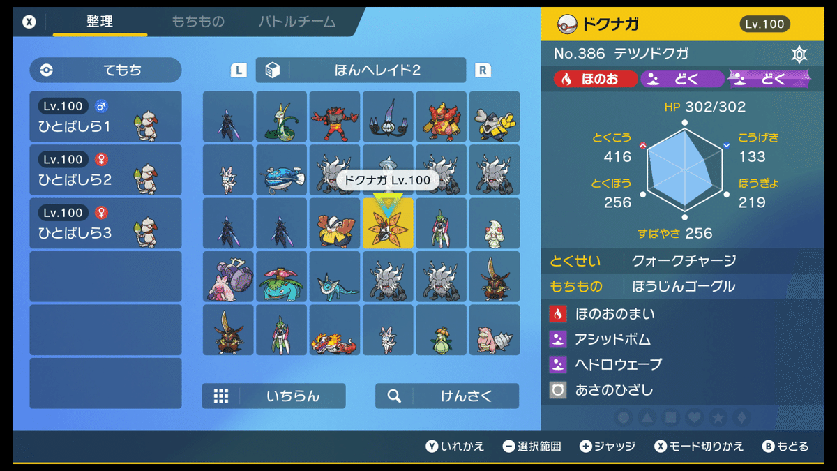 70種もあると流石に検証も考えるのも長くなりましたが、なんとか一応の回答は出せたかなと思います。一応できる範囲でポケモンを流用できるよう組んでみましたがそれでもかなりの数になってしまいました。加えて検証するためだけに日付を変更しまくる作業が何日も続いたため暫く日付変更画面を見たくないです。