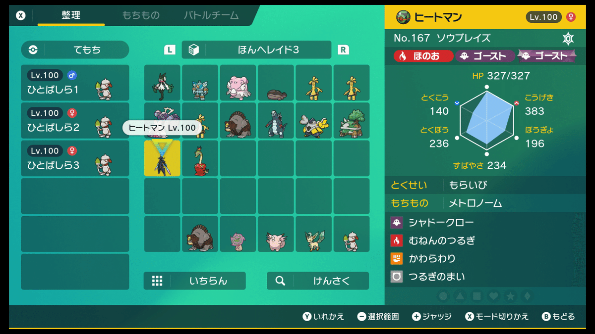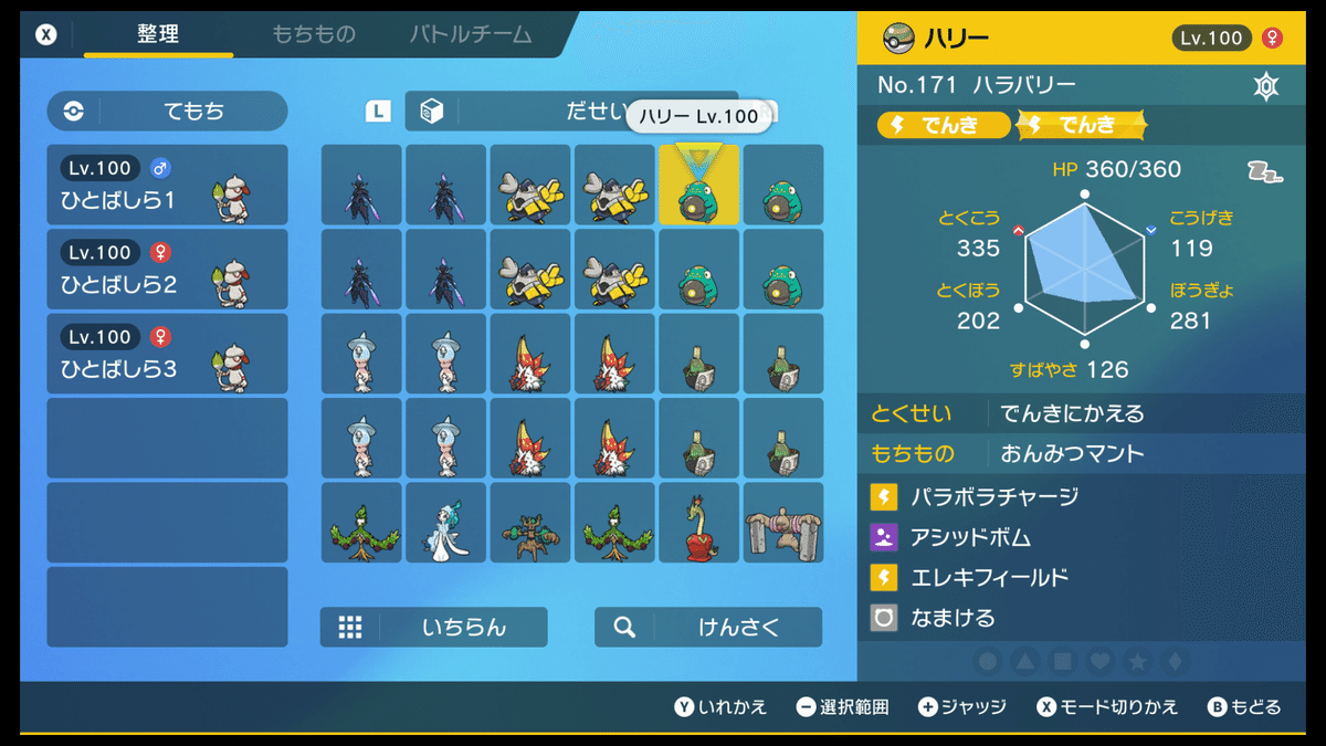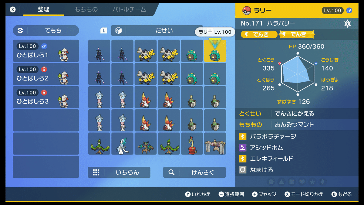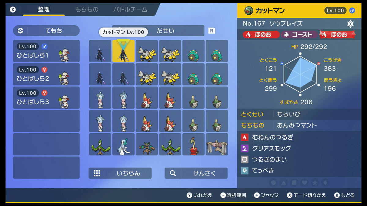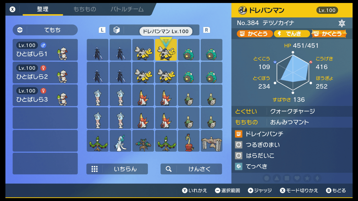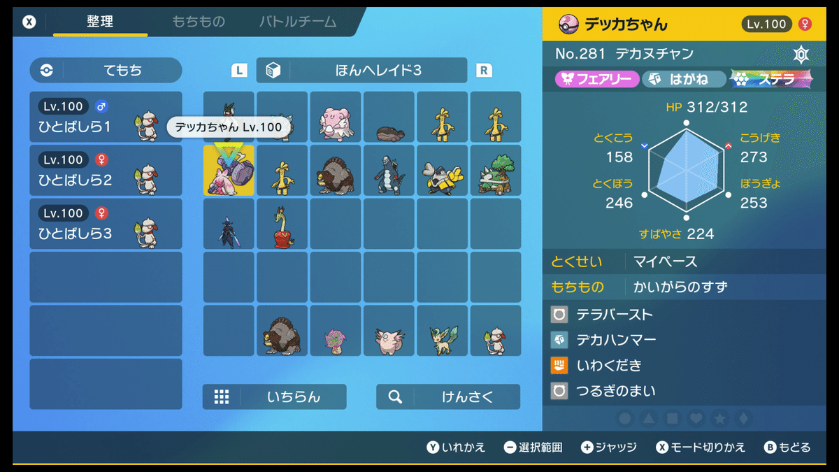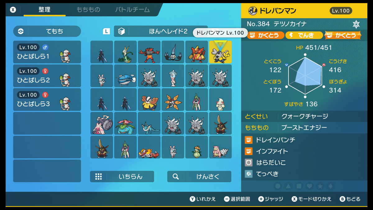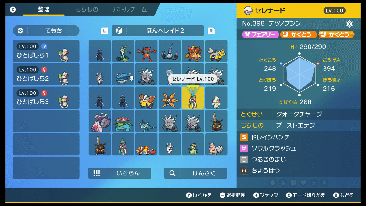 70種もあると流石に検証も考えるのも長くなりましたが、なんとか一応の回答は出せたかなと思います。一応できる範囲でポケモンを流用できるよう組んでみましたがそれでもかなりの数になってしまいました。加えて検証するためだけに日付を変更しまくる作業が何日も続いたため暫く日付変更画面を見たくないです。