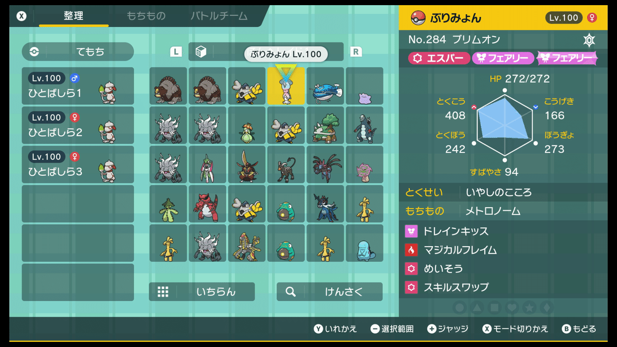 ブリムオン:初手スキルスワップの後、瞑想2回積みドレインキッス連打。強化解除は同じように瞑想を積み直しドレインキッス連打。