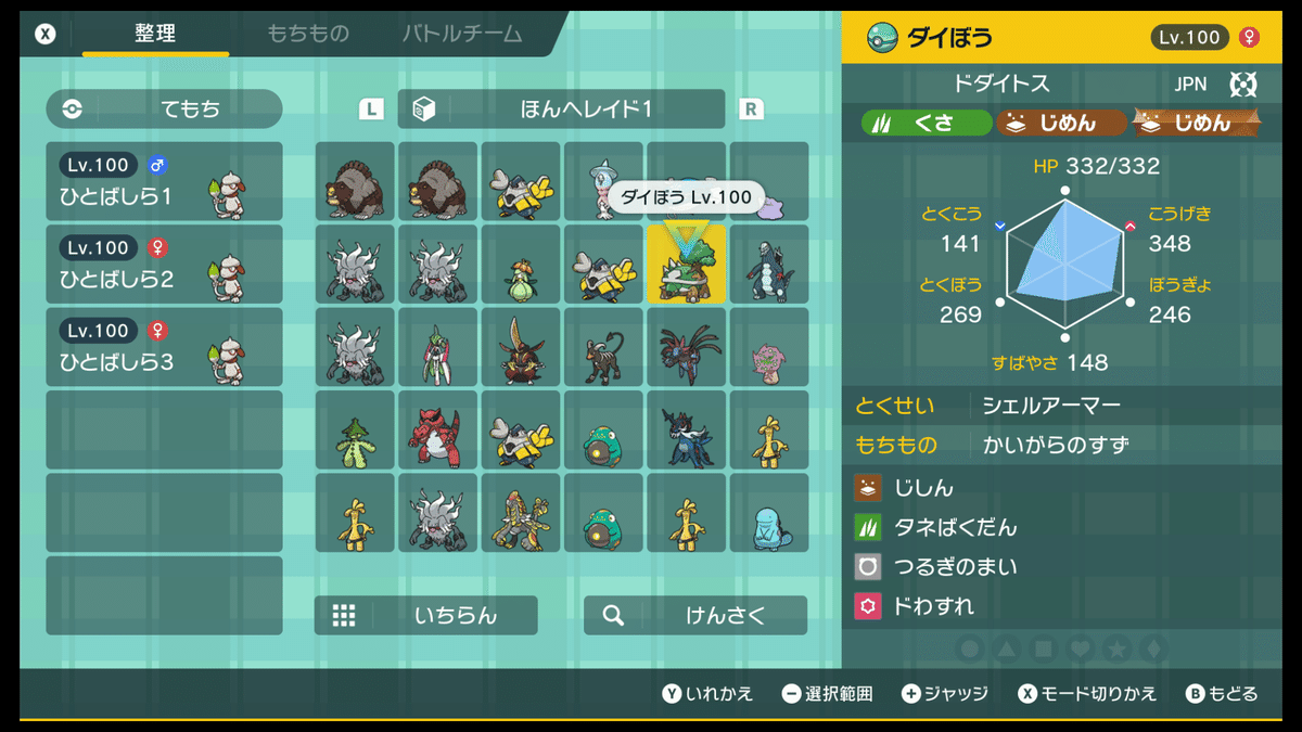 技:テラバースト/アイアンヘッド(ドゲザン)/つるぎのまい