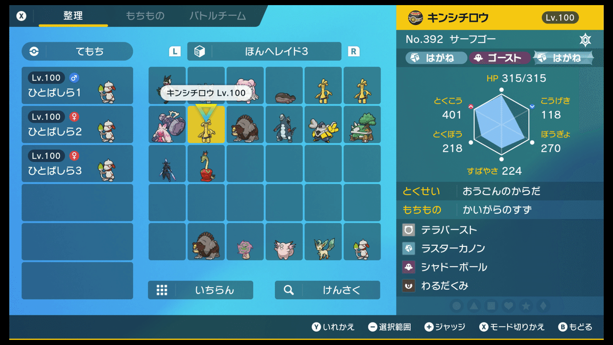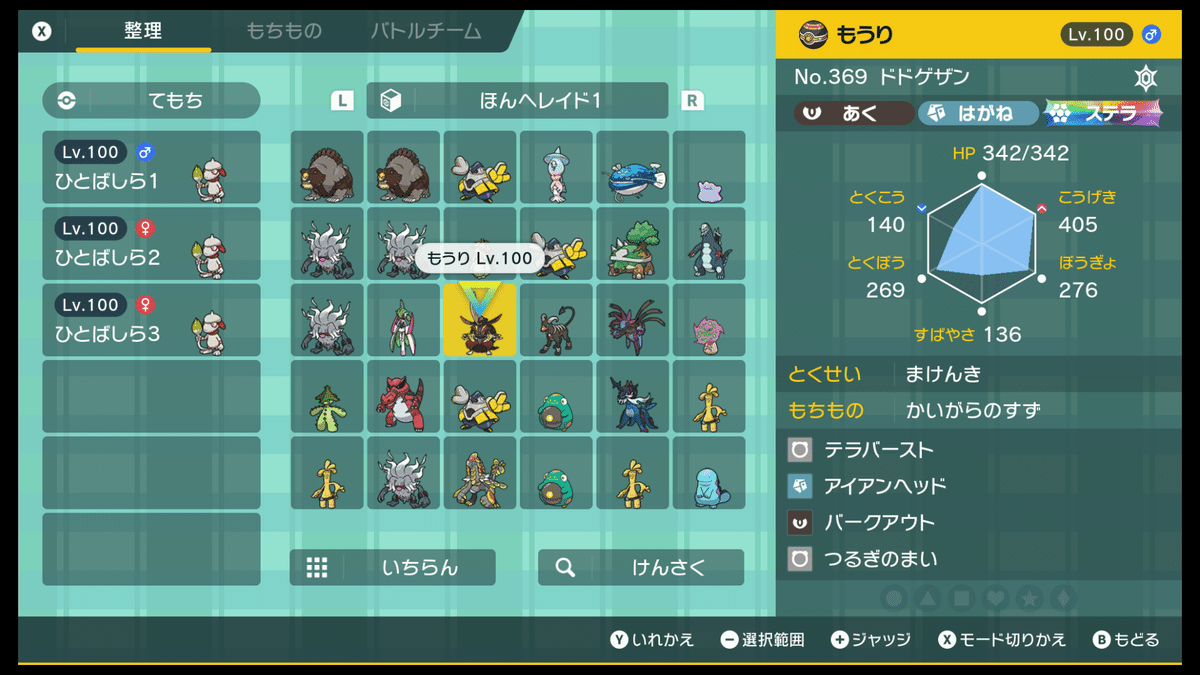 対策なしでは止まらなくなる自信過剰持ちのポケモン。上記3体はいずれもテラレイドwikiに載っていたものをそのまんま引用している。一応他の方法も探してみたもののあまり安定性の高いポケモンは発見できなかった。
