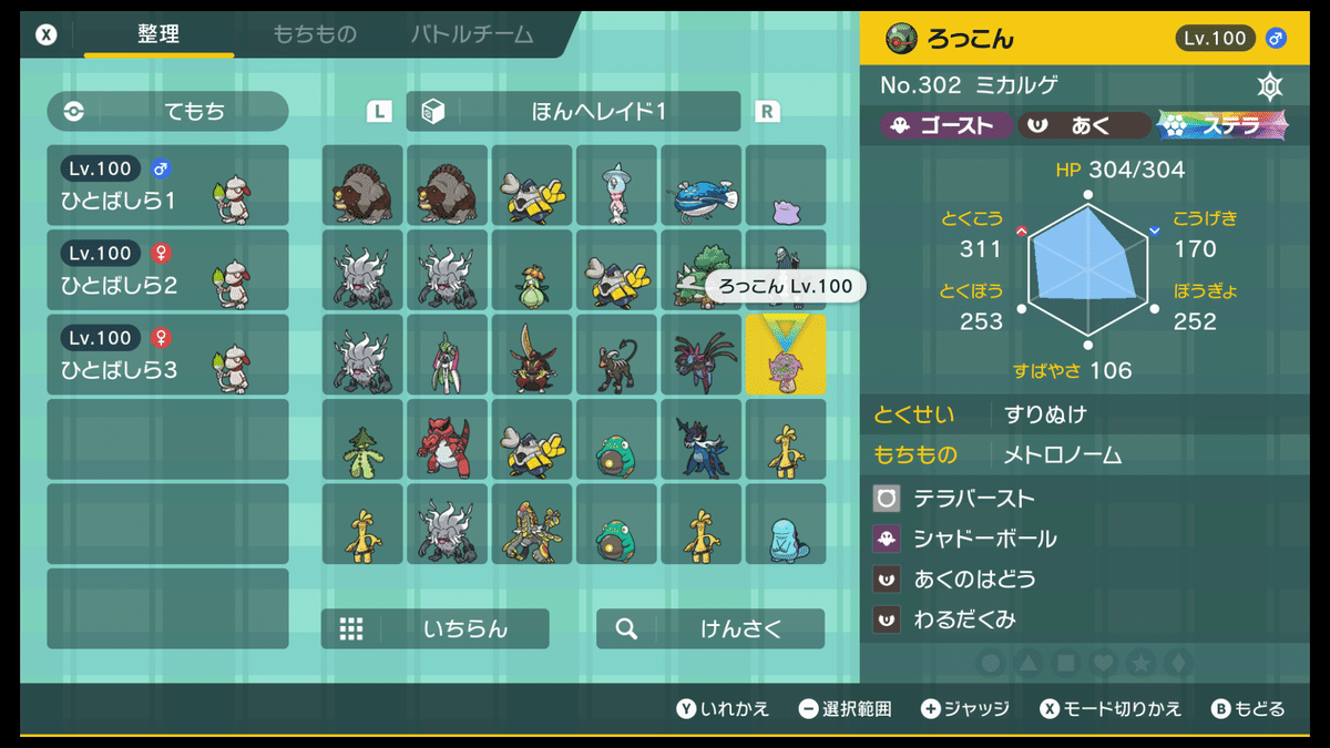 技:テラバースト/ラスターカノン(シャドーボール)/わるだくみ