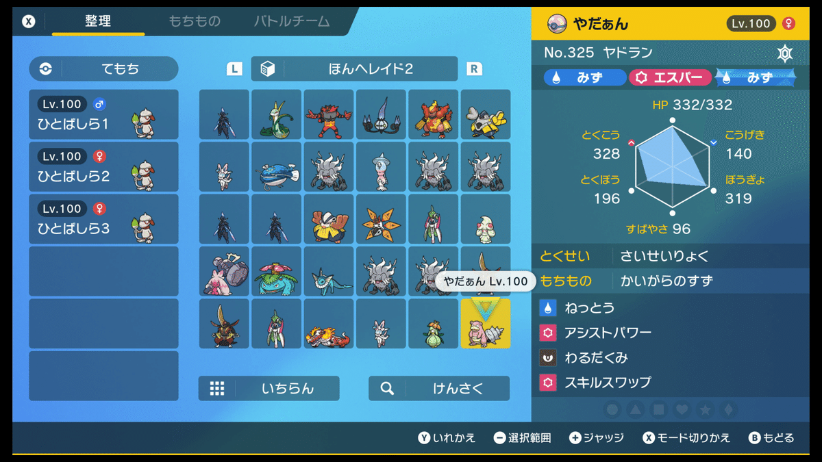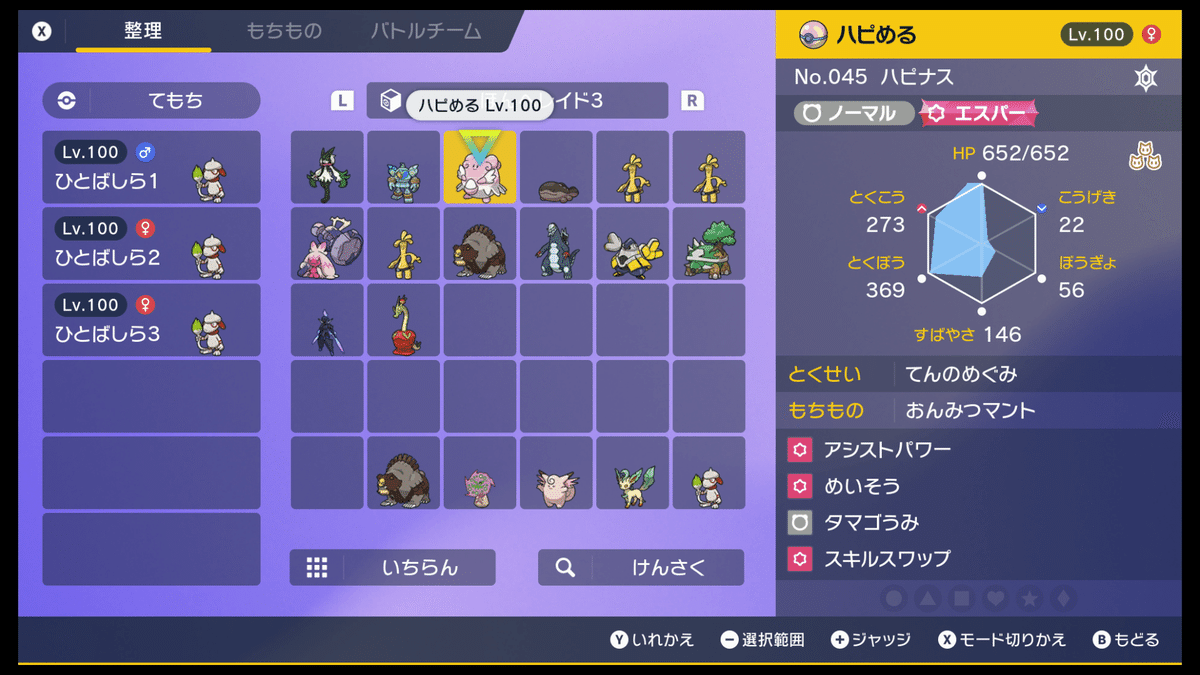 技:アシストパワー/めいそう/タマゴうみ/スキルスワップ