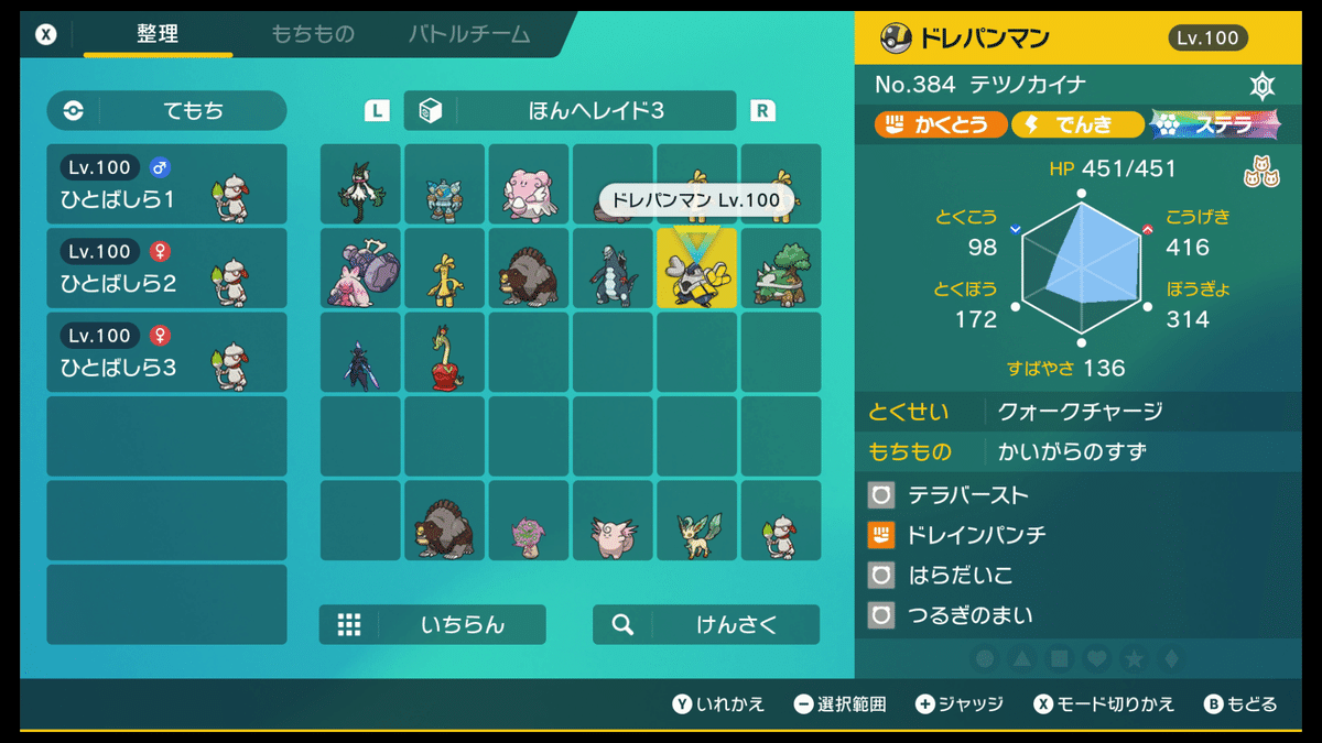 なお3体とも対応テラスタイプの仕様通りに実際に攻略できたため構成に関しての問題はないと思われる。