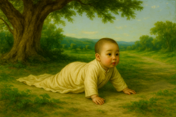王氏一手抱着孩子,一手提着那个竹篮,在盛夏下艰难地行走,非常累人。走到一半路时,就在一棵树荫下短暂休息,往篮子里头一看,香糕丢了,心想:路上周围没有其他行人,回头或可能找到。于是她就把儿子放在地上,返身回去寻找。走了几十步后,看到有一个人用水车车水灌田,那是她娘家的邻居。她就问:“你有看见我的香糕包吗?”那人回答:“没有。”她又问:“这条路上还有其他行人吗?”答道:“没有。”王氏又继续向前走,大约又走了半里路,但仍然找不到。