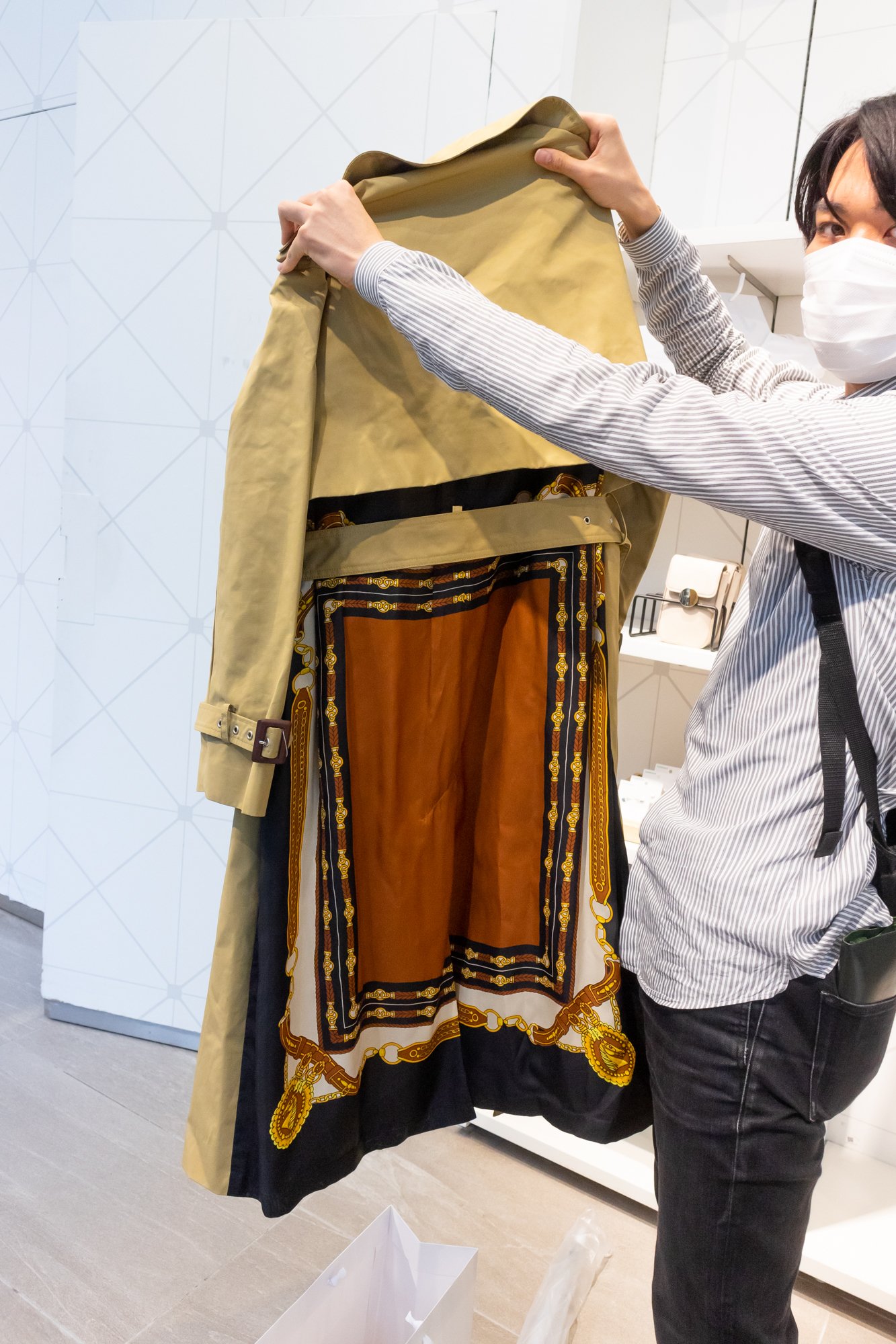 トレンチコートと、リゾートシャツです。奇抜なデザインですが、モダンさやシャープな雰囲気もあって。ストリートでもモードでもどちらのスタイルでも使えるので良いなと思いました。2つで3万5000ぐらいで、目当ての2点を無事買えて良かったです。