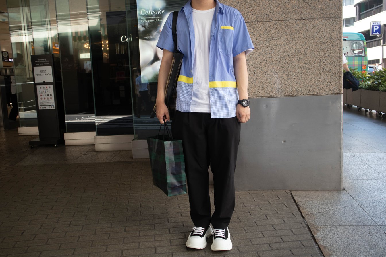 ー今日着用しているシャツもギャルソン、スニーカーは「アレキサンダー・マックイーン(Alexander McQueen)」、トートバッグは「フレッドペリー(FRED PERRY)」のものですね。