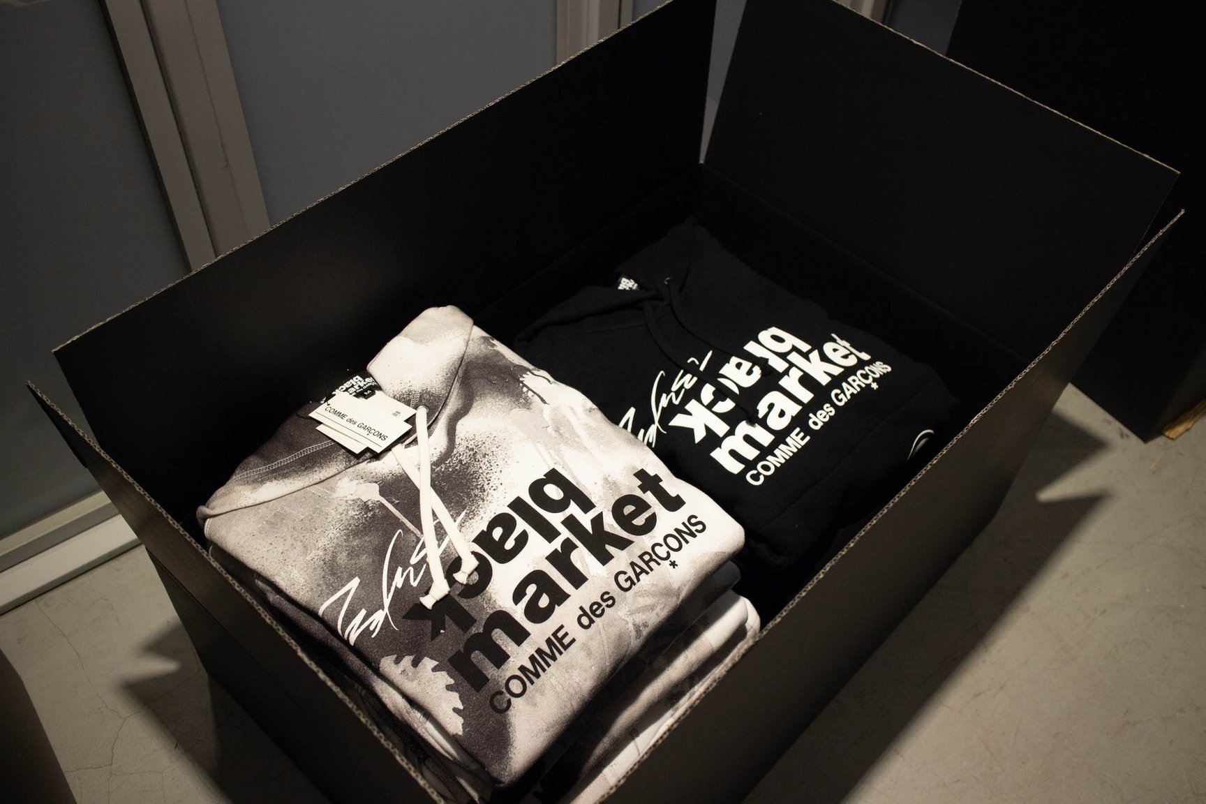 コム デ ギャルソン"闇市"の内部が公開、バーバリーやVANSなど約30型の黒アイテムを限定発売