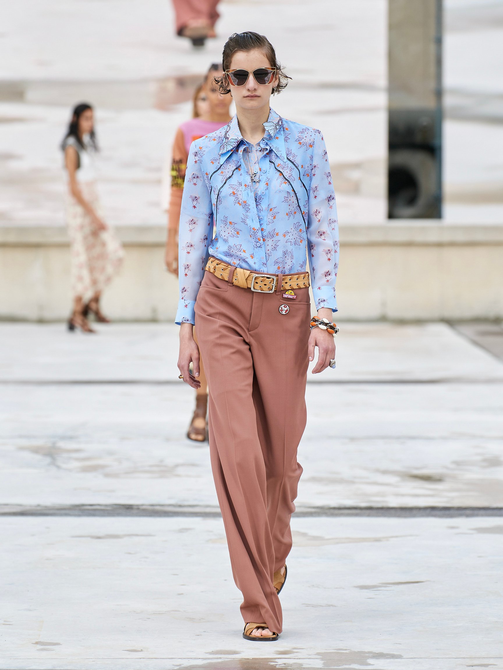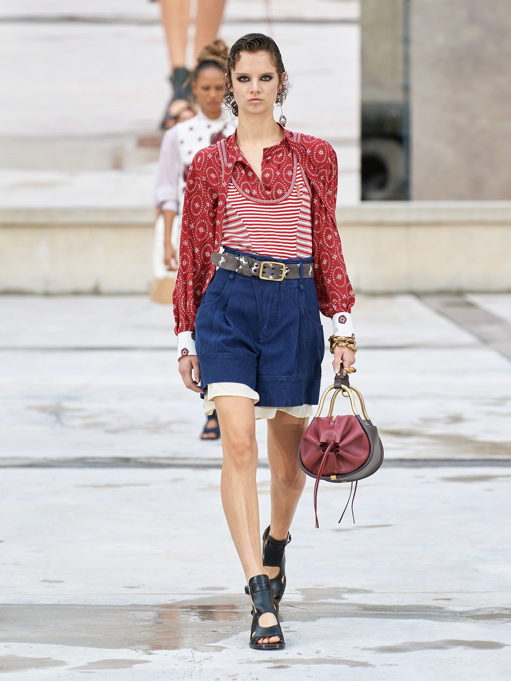 クロエのオプティミスティックでインディペンデントな女性像は今季も顕在。繊細なヴァランシエンヌレースを施したプリーツクレープドレスやキャミソール、アール・ヌーヴォーのフラワーアップリケをあしらったコットンチュニックなどが軽やかなシルエットを作り出す。それらにスタイリングされた、ロングブレザーやキャンプシャツ、ストーンウォッシュ加工されたギャバジン素材のタックショーツといったボーイッシュなアイテムがエアリーなシルエットを引き締め、 クロエのタイムレスなアティテュードを再解釈した。