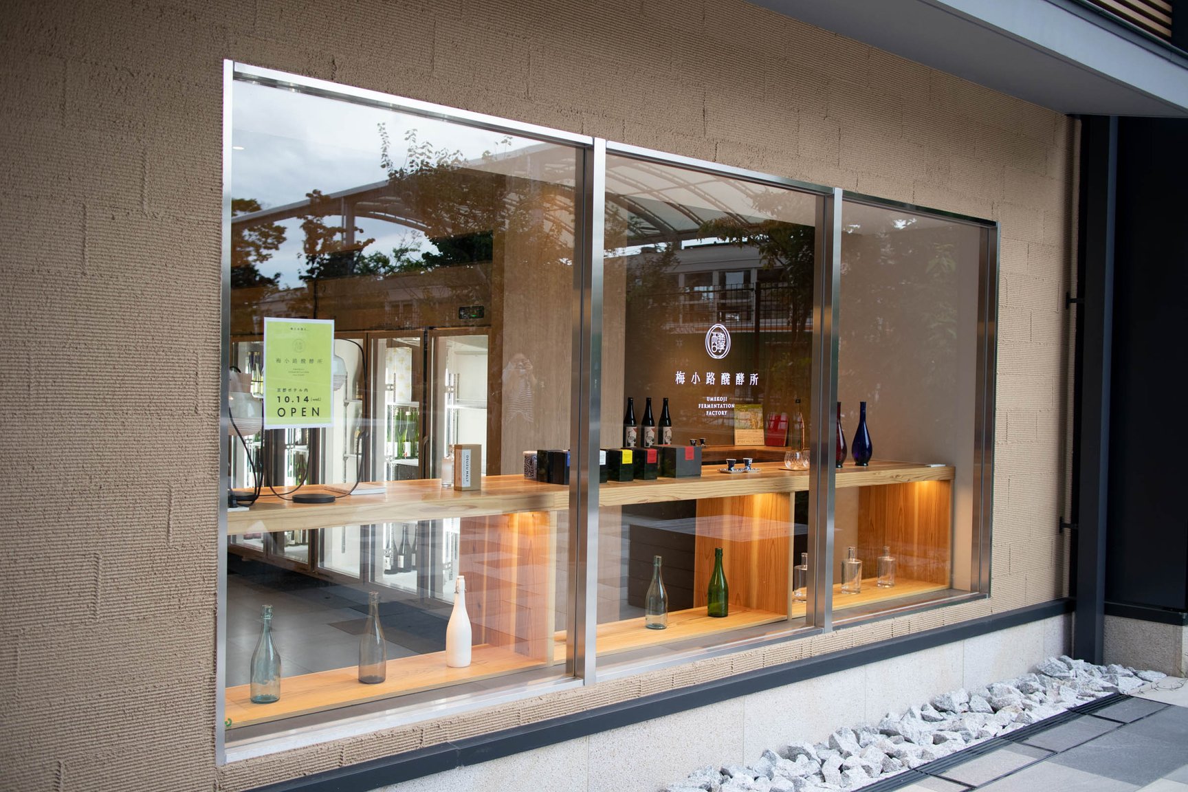 「梅小路横丁」と名付けた別棟1階には、銭湯「ぽて湯」と醗酵所「梅小路醗酵所」がオープン。ぽて湯にはサウナを併設したほか、牛乳石鹸とのコラボレーションアイテムも販売する。醗酵所は「かもす」「まなぶ」「のむ」「かう」の4つのゾーンで構成し、醗酵食品の原料である麹を造る麹室を併設。酒や食品などを取り扱っている。別棟2階は、ショップやギャラリー空間の「Blank」や多目的スペース「Park」を展開。Parkでは京都シネマをタッグを組み、上映会などを開催する予定だ。