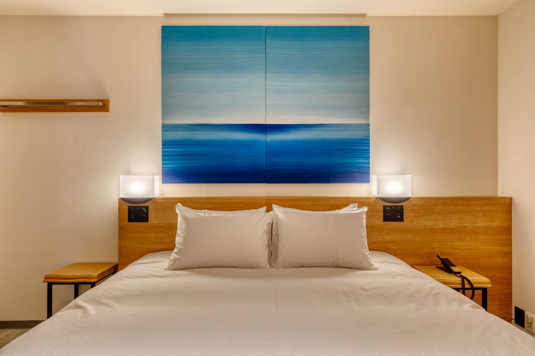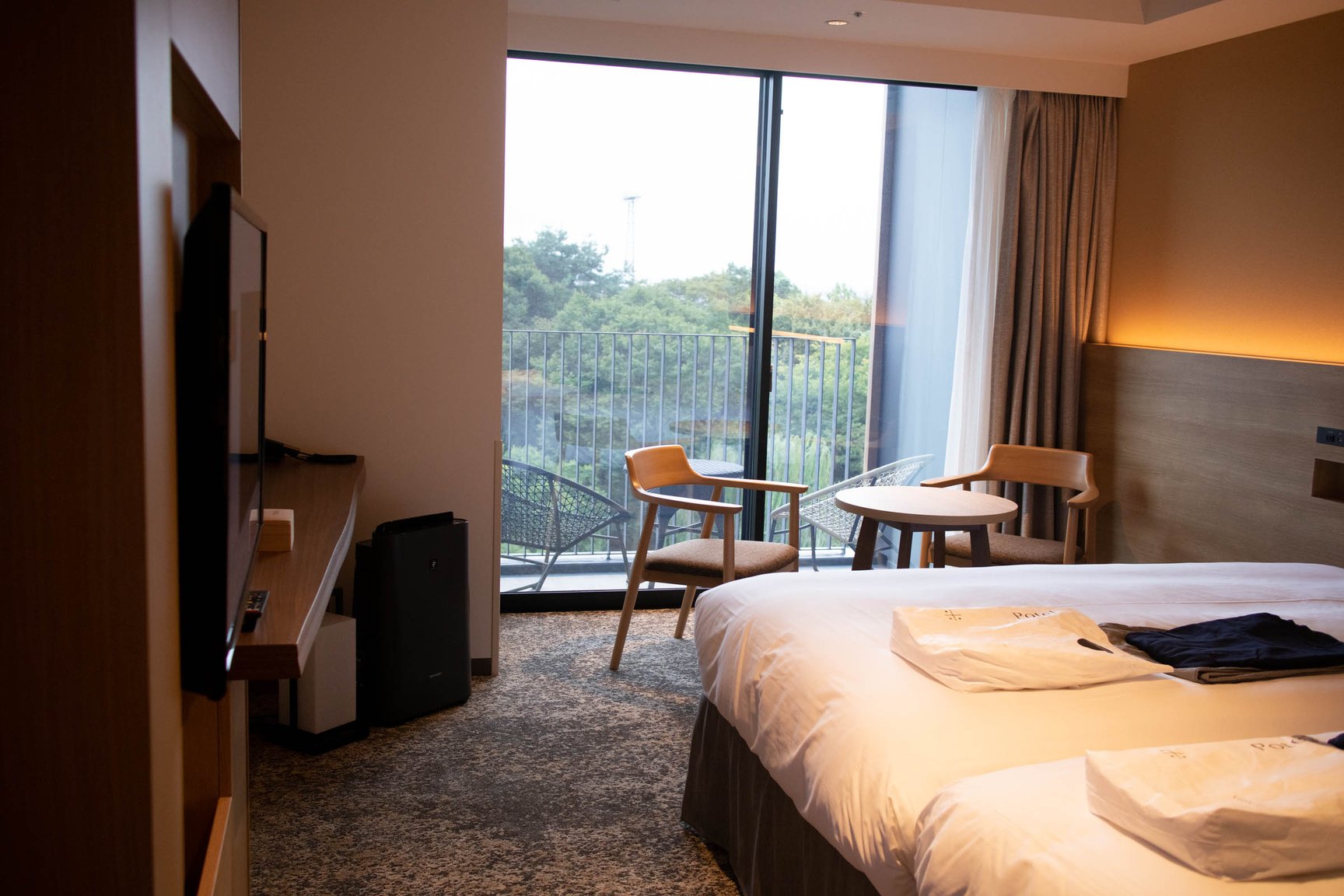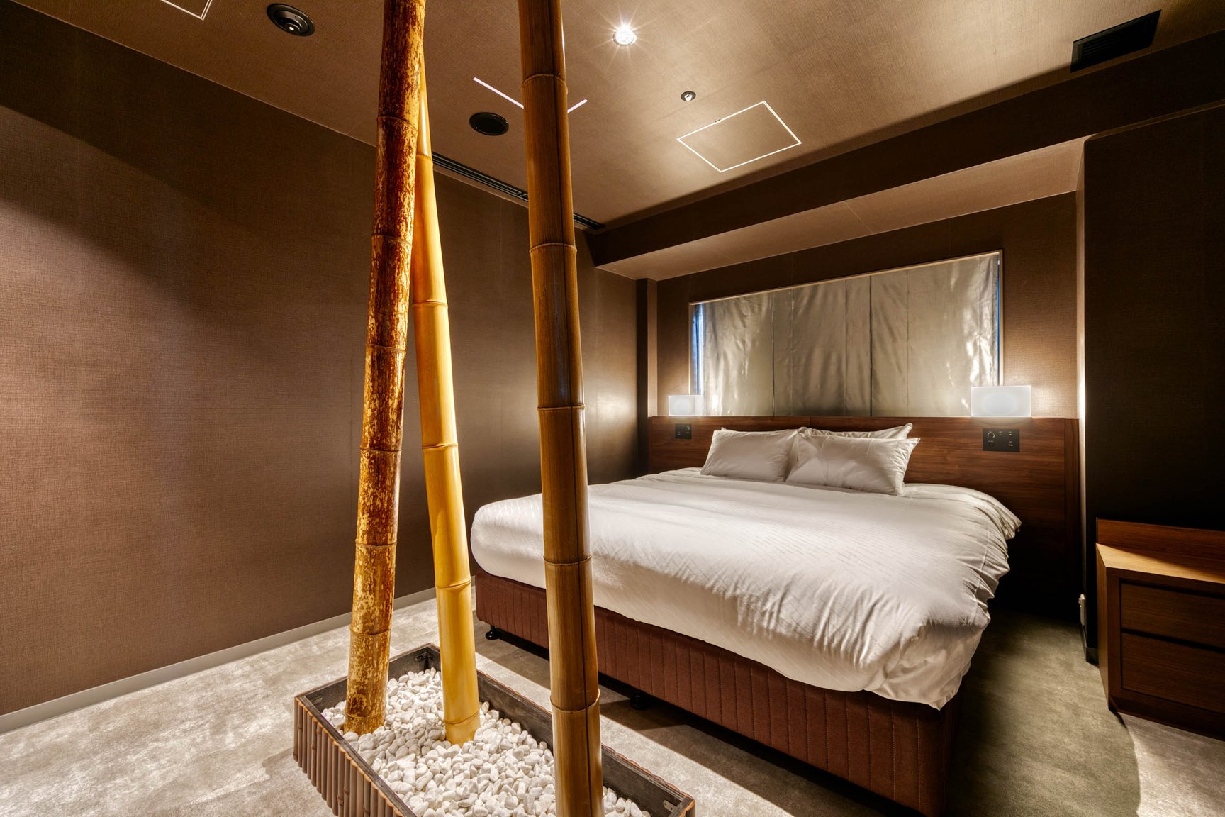 梅小路ポテル京都は、JR京都駅中央出口から徒歩15分の場所に位置し、JR西日本の京都梅小路社宅跡地に開業。地上5階建ての本棟と地上2階建ての別棟で構成し、客室は本棟の2〜5階に設ける。設計デザインは「オーク表参道(oak omotesando)」などを手掛けた大林組が担当。客室は全144室で、「ガーデン」(5万8200〜)、「パークサイド」(4万7800〜)、「ウッドボックス」(4万3300)、「ウッドフラット」(4万3300〜)、「aeru room」(2万9000〜)、「Potel room」(3万1200〜)、「ユニバーサル」(4万3300〜/いずれも税込、1泊あたりの料金)の全7種類で構成する。ガーデンやパークサイドはテラス席を備えた洋風スタイルの部屋で、隣接する梅小路公園が眺望できる。ウッドボックスやウッドフラットは、日本家屋のような和のテイストを取り入れた空間に仕上げた。職人の伝統技術を体感できるaeru roomは、丹後ちりめんの引き染めの技法で描いたパネルや職人の道具を用いた客室「SILK」や、京都の北山杉をベッドに使用した部屋「WOOD」などを展開。全ての客室にアメニティとして牛乳石鹸の赤箱が用意されている。
