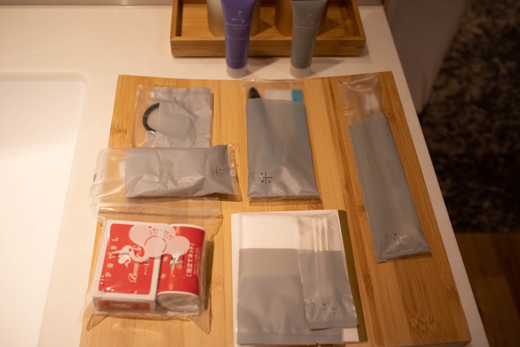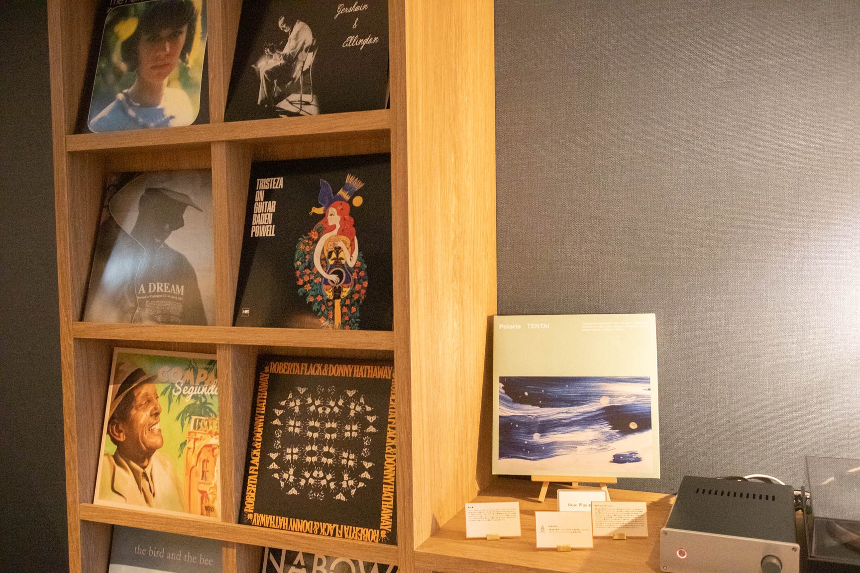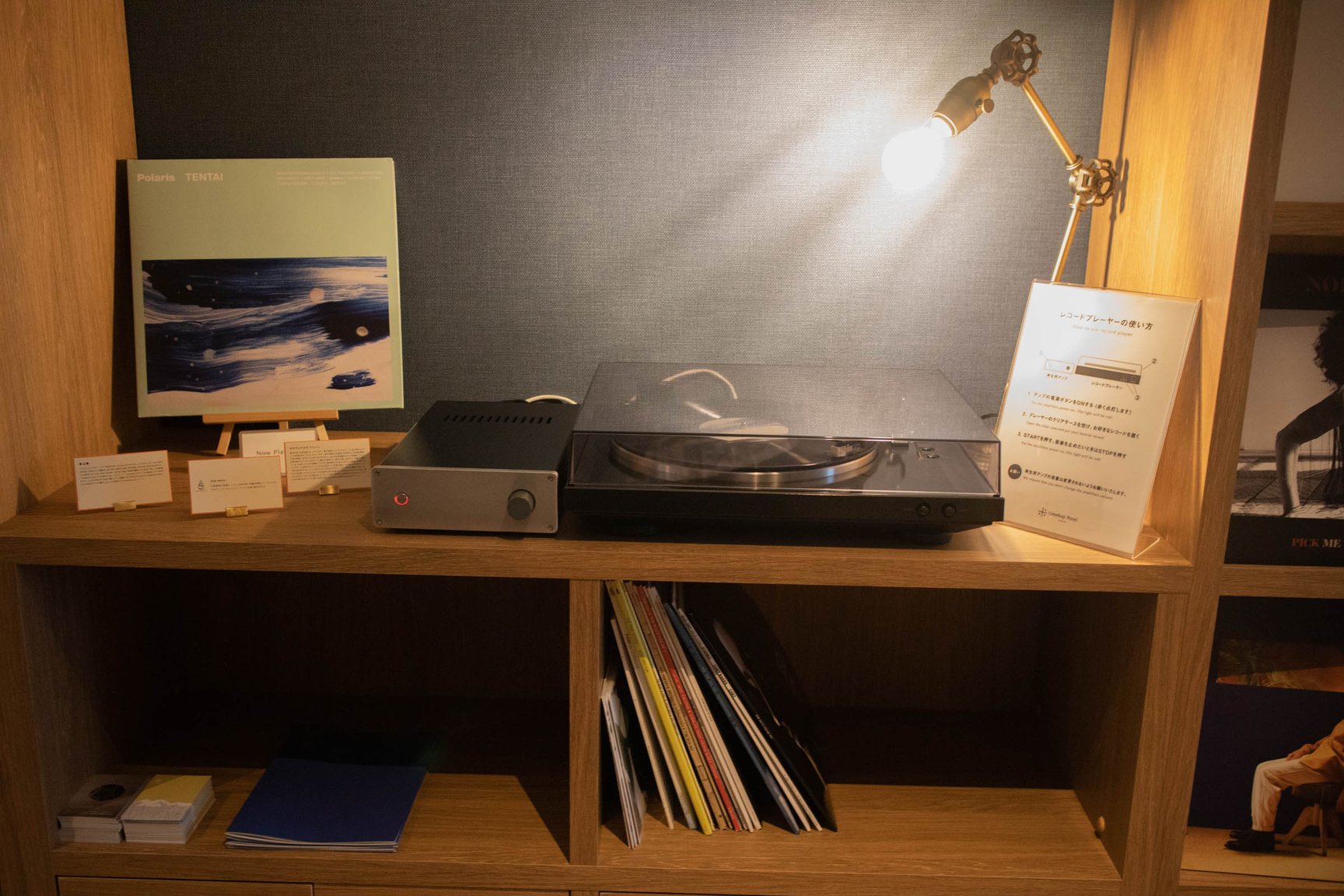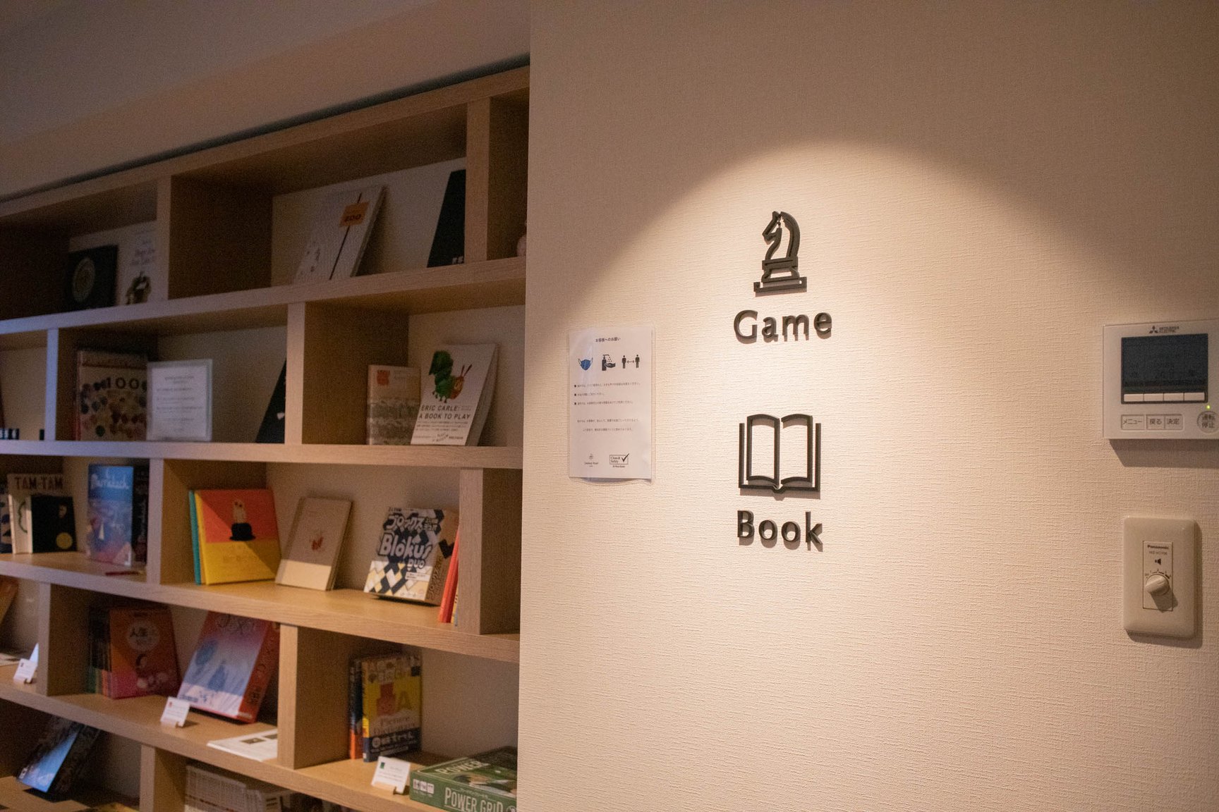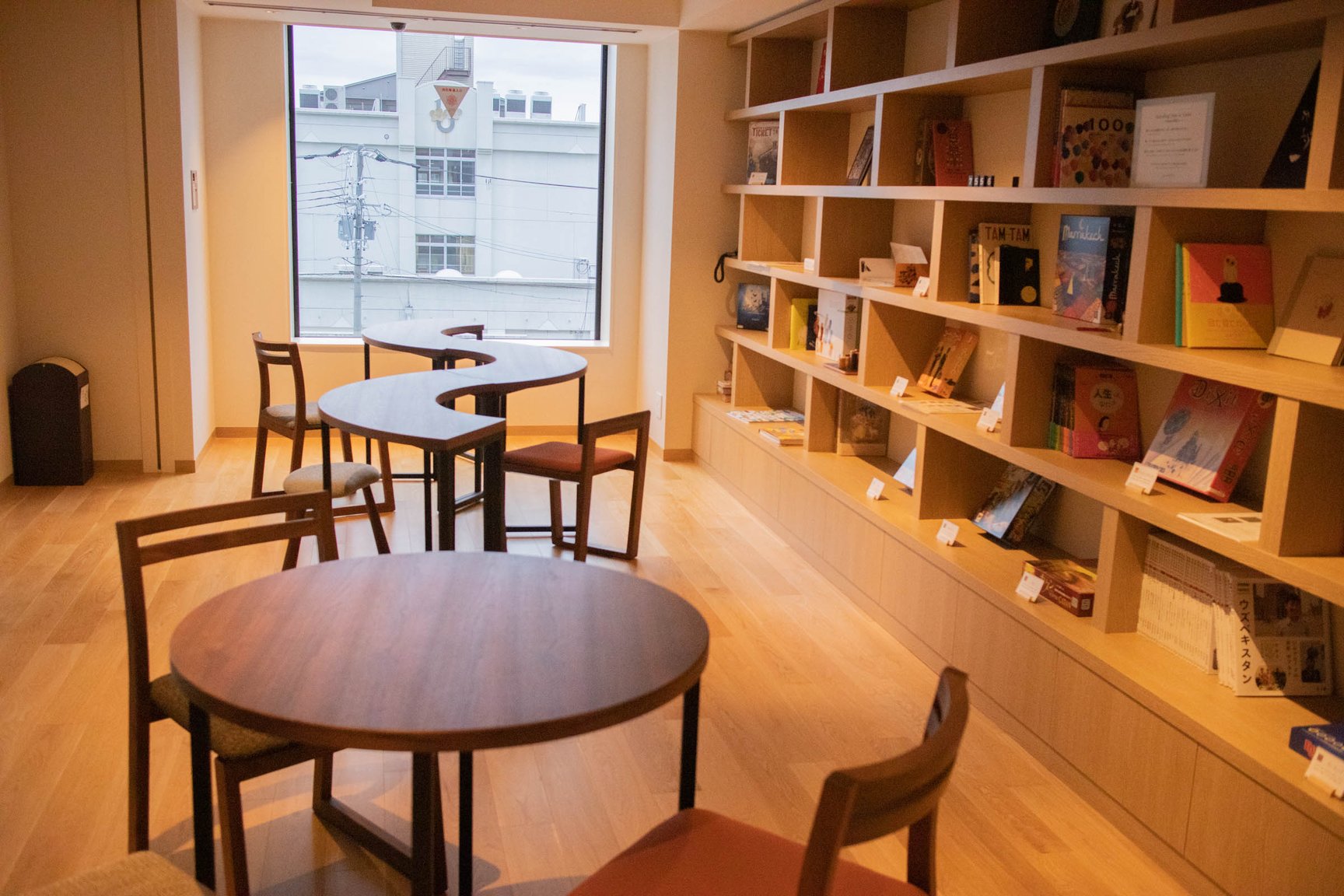 本館の2〜5階には客室に加え、本やレコード、ゲームといったテーマごとに分けられたスペース「あわいの間」を設置。本をテーマにした「Book」には、京都の本屋「誠光社」を手掛けるブックソムリエの堀部篤史が選書した様々な書籍が並び、「Game」では京都のボードゲーム制作会社TANSANがセレクトしたボードゲームを用意。4階の「Music」では、京都発の音楽レーベル「bud music」が選んだレコードを展示しており、レコードは自由に流すことができる。5階の「Moku」は「木との新しい出会い」をテーマに、木の玩具や卓球が楽しめる。京都にゆかりのある人物や企業が、ポテルを通じて各々の分野で京都を表現したという。