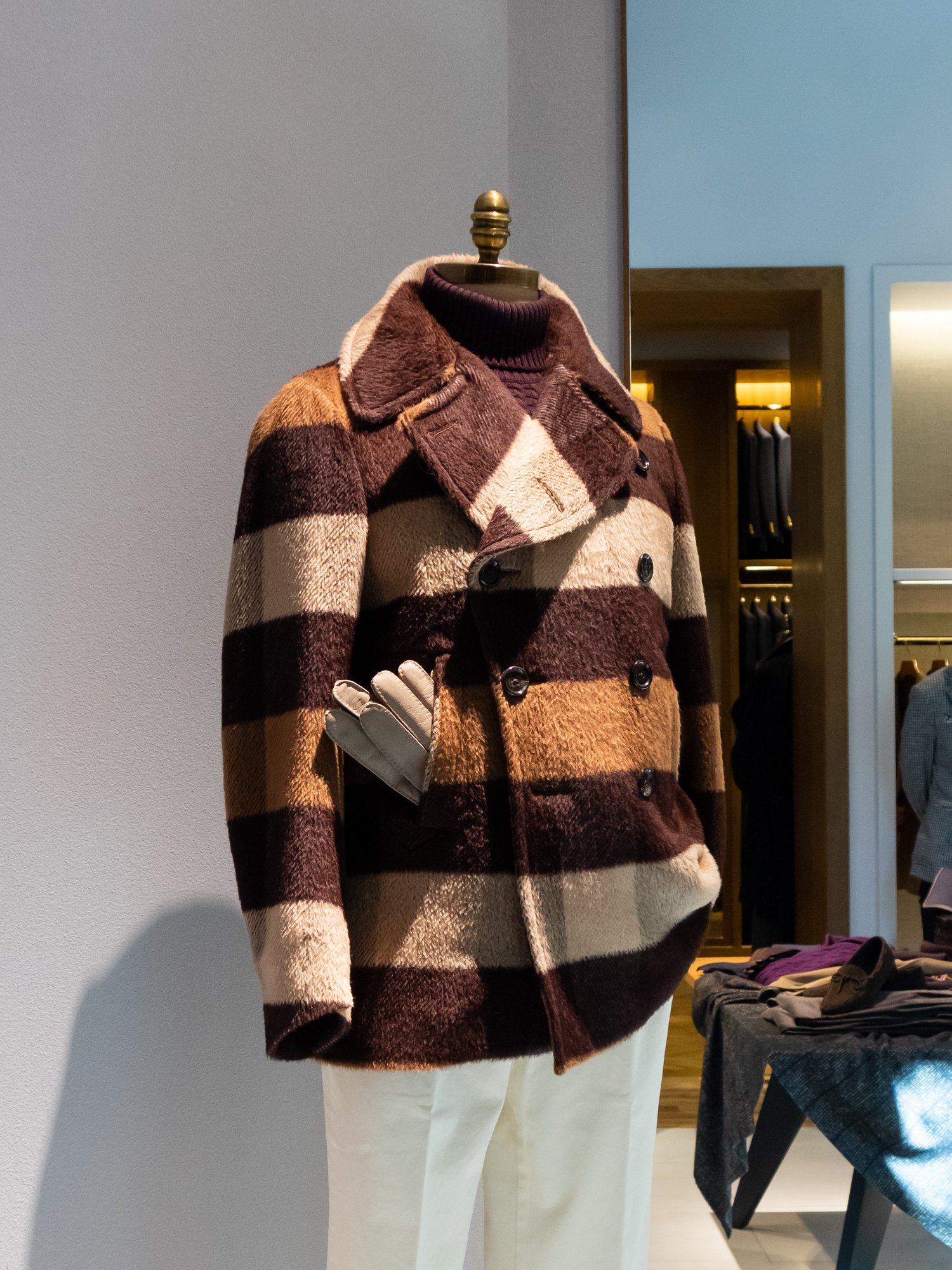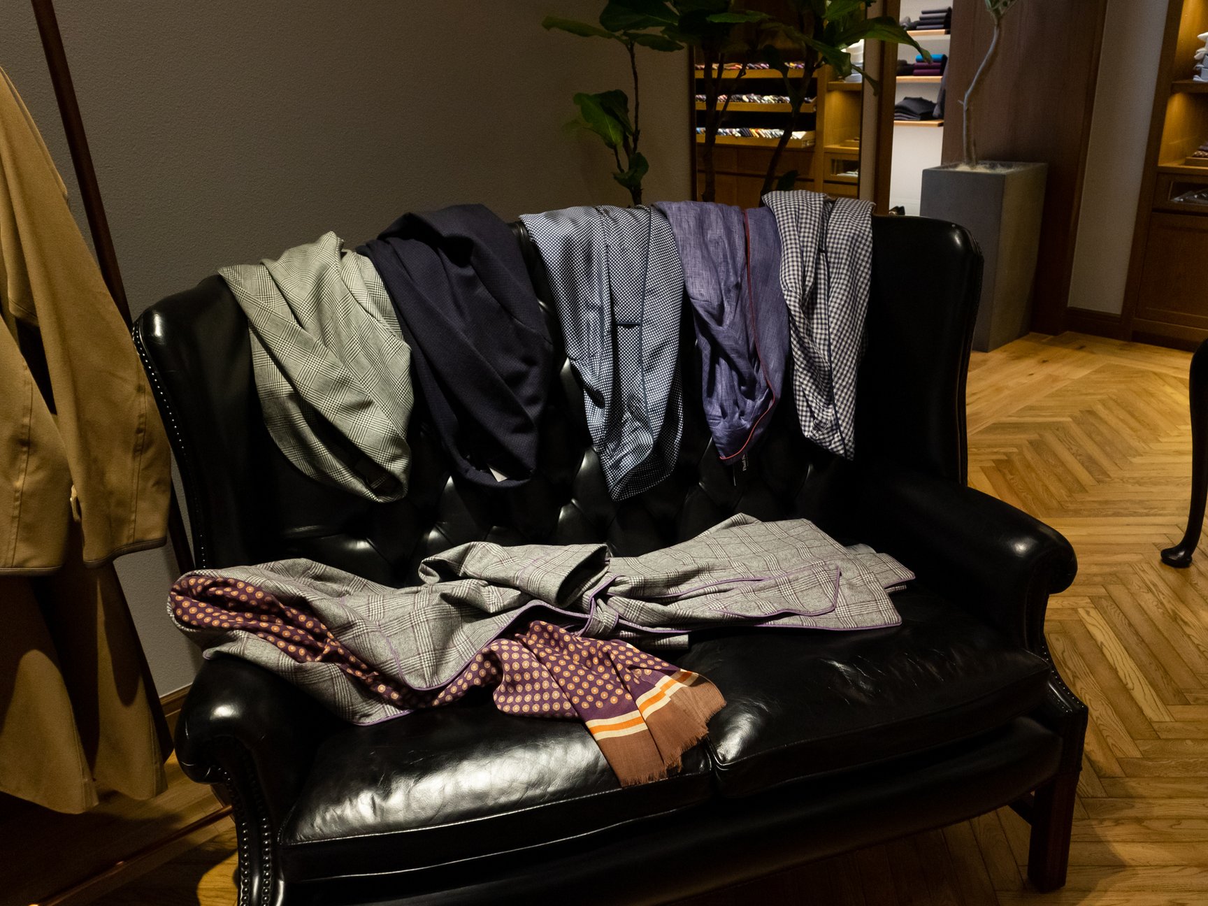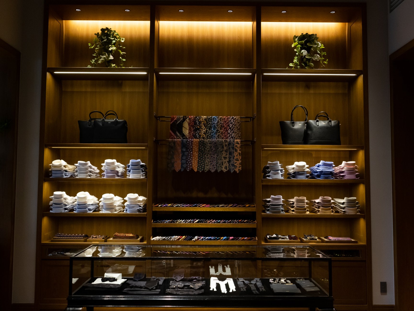 メンズカジュアルではコレクションラインをはじめ、百貨店でも販売している共通ライン、直営店限定アイテムを用意。メンズスーツではビジネスシーンからカジュアル、フォーマルシーンまで対応する。ウィメンズは、メンズのジャケットと同素材のワンピースや、メンズ仕様を取り入れたブレザーなどが揃う。メンズスーツをはじめとする一部アイテムはパターンオーダーが可能となっている。