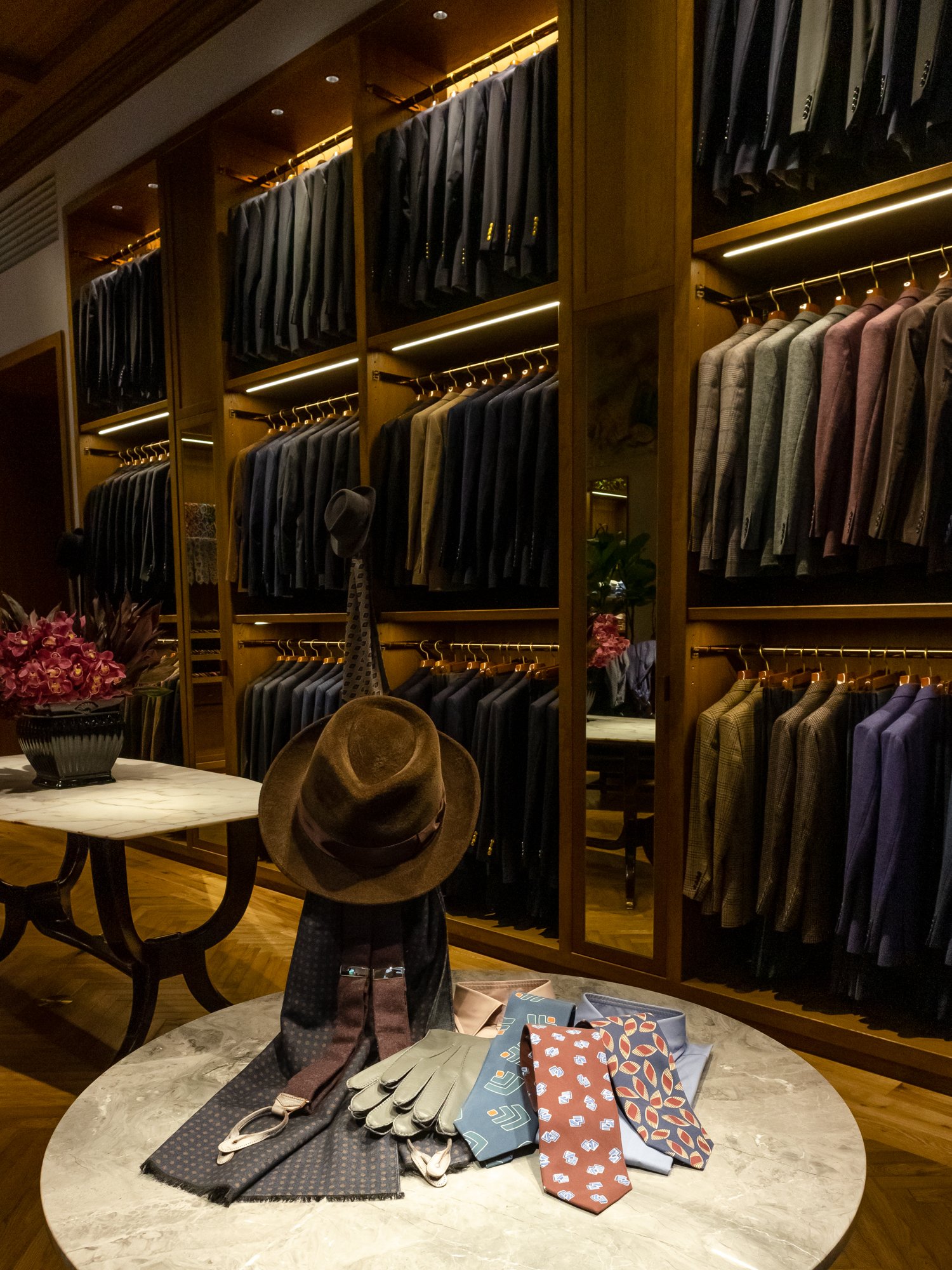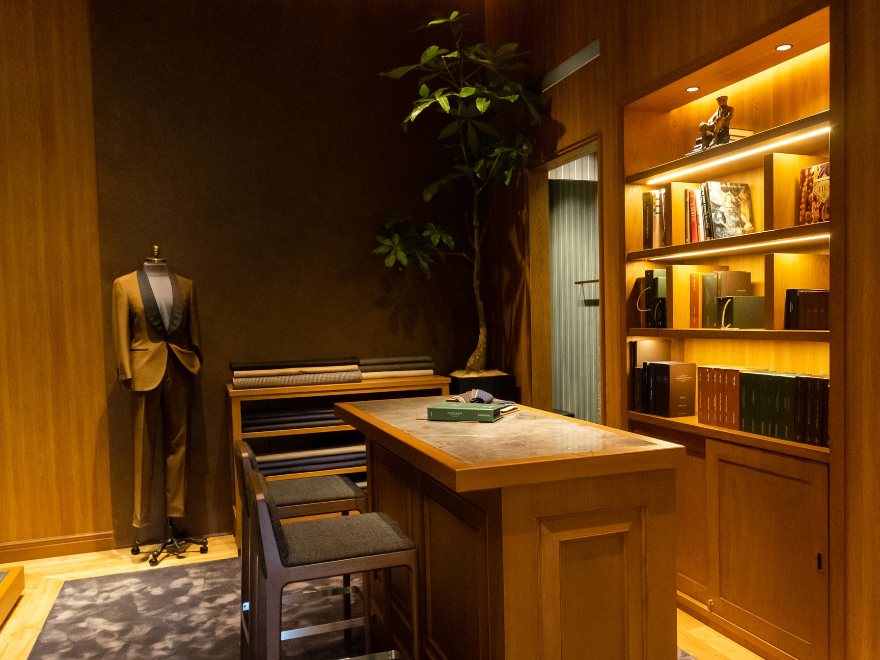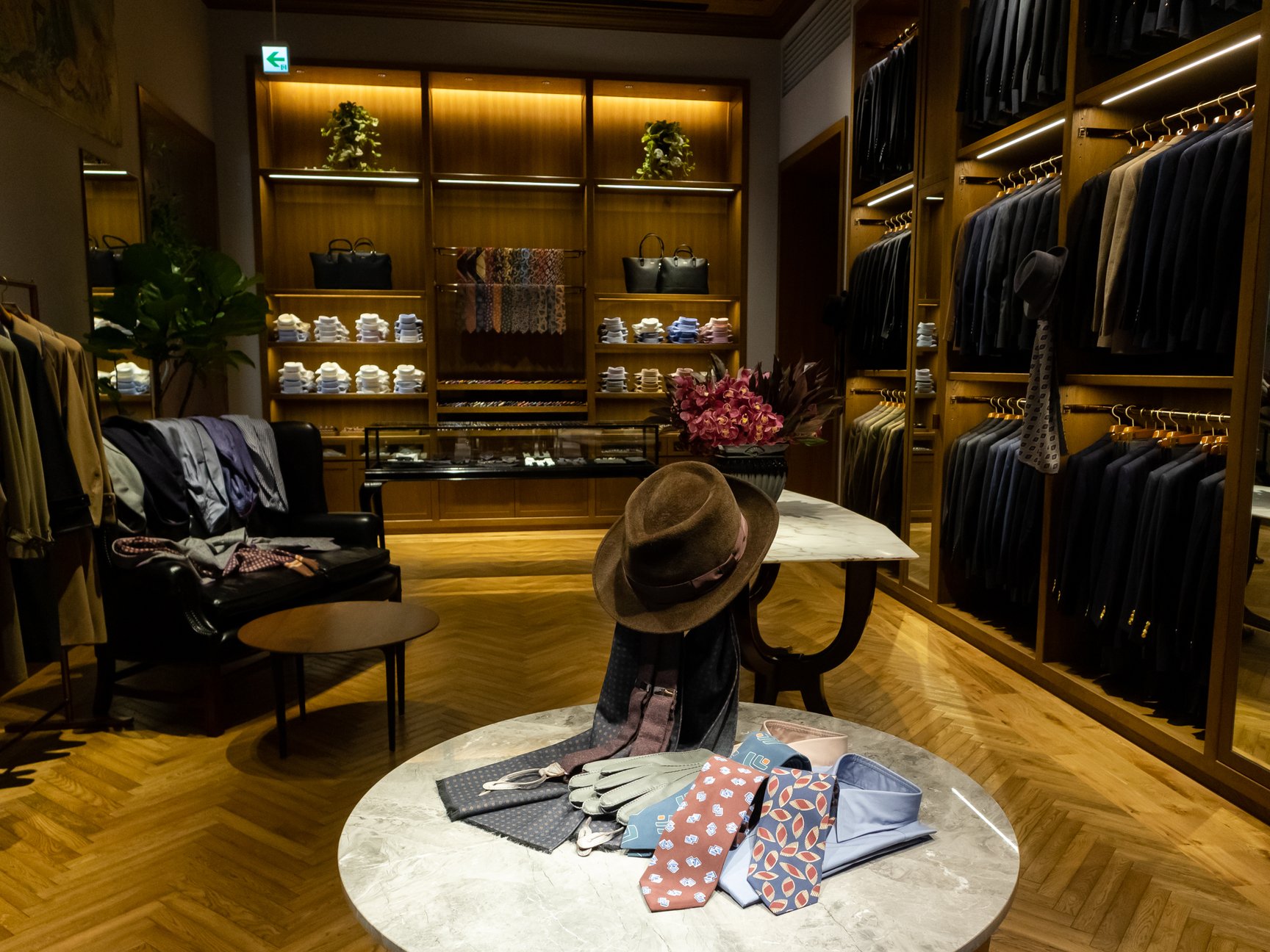 新たな旗艦店はコンセプトに「何処にもない、ここだけのPaul Stuart」を掲げる。売場面積は約325平方メートルで、重厚な雰囲気だった旧店舗とは対照的に、新店舗はシンガポールの「ラッフルズホテル」からインスピレーションを受け、モダンでコロニアルな店内に仕上げた。メンズカジュアル、メンズスーツ、ウィメンズの3つのファッションスペースに加え、日本初展開となるバー「The COPPER ROOM」、回廊スペースのコリドーの計5スペースで構成。ジ アーガイル アオヤマにはホテルやレストラン、オフィスなどが入居していることから、男女の幅広い層に対応する店舗として展開するという。
