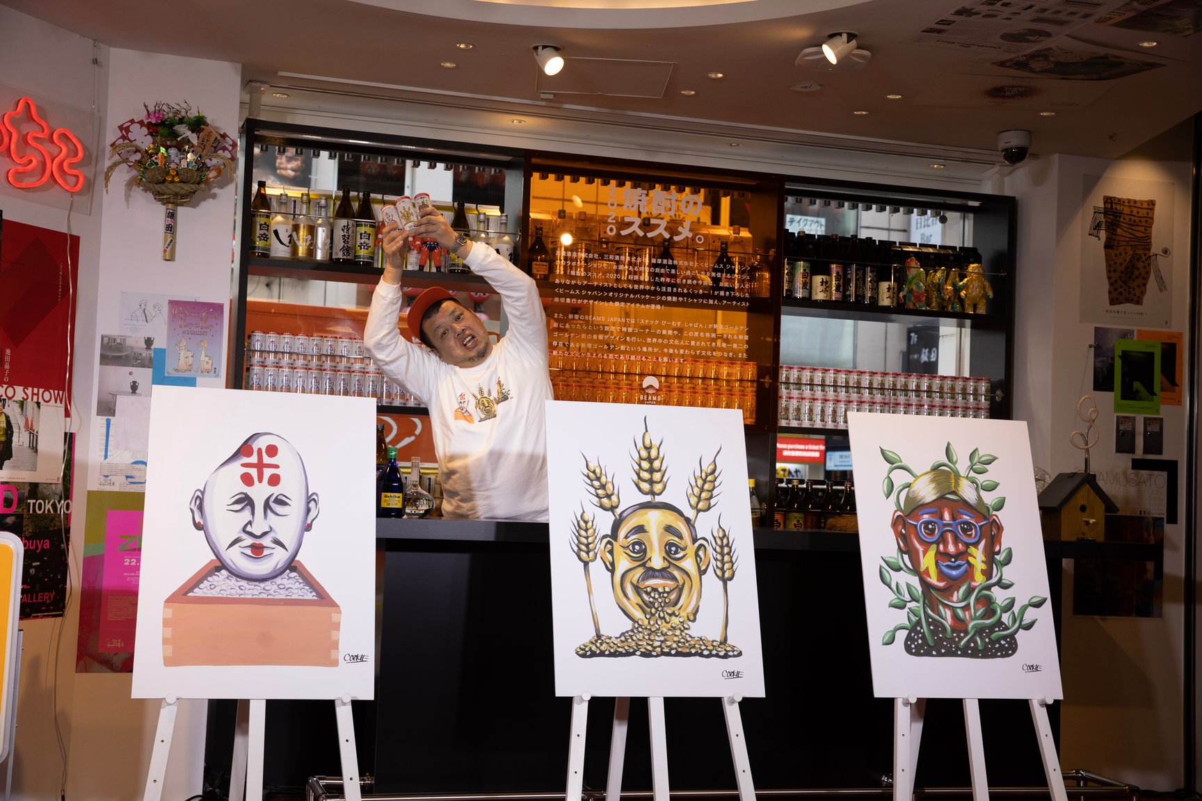 「ビームス(BEAMS)」が、高橋酒造、三和酒類、薩摩酒造の3社とのコラボレーションプロジェクト「焼酎のススメ。2020」を発表した。野性爆弾のくっきーがパッケージデザインを手掛けたカップ焼酎を販売しているほか、プロジェクトの連動企画として新宿ゴールデン街の新看板のデザインを担当。12月1日の今日、「ビームス ジャパン(BEAMS JAPAN)」新宿店と新宿ゴールデン街で発表会が開かれた。