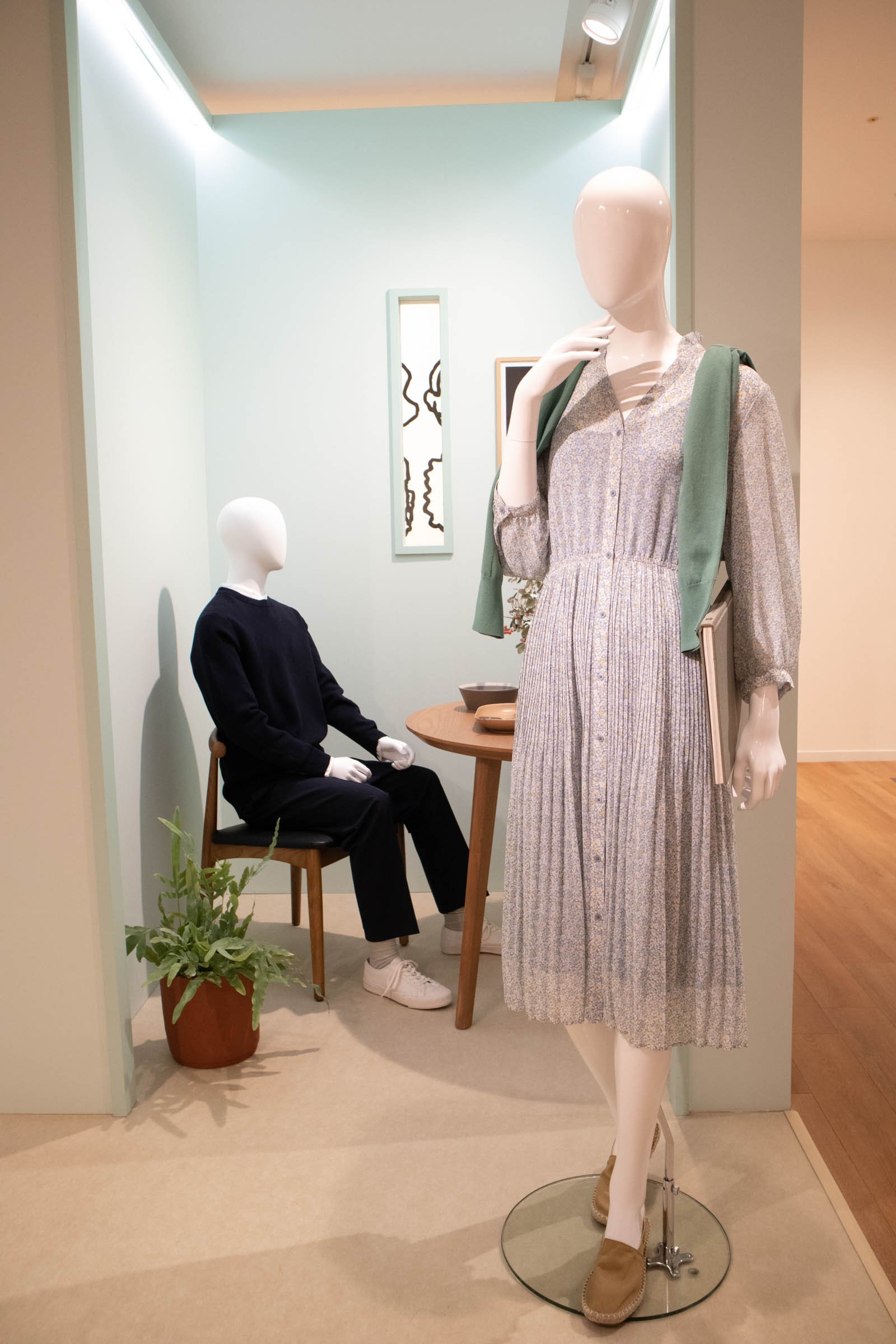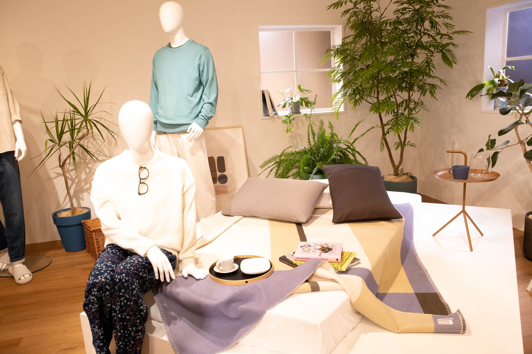 ホームでは、居心地の良さや癒しを体感できるホームアイテムを多く展開。ルームウェアやパジャマ、ECで継続的に販売しているエアリズム素材のシーツや枕カバーをラインナップする。ルームウェアやパジャマでは花柄などデザイン性のあるものを多く揃えるほか、手触りが良い素材のアイテムも登場し、ワンマイルウェアとしても着用できるようにした。