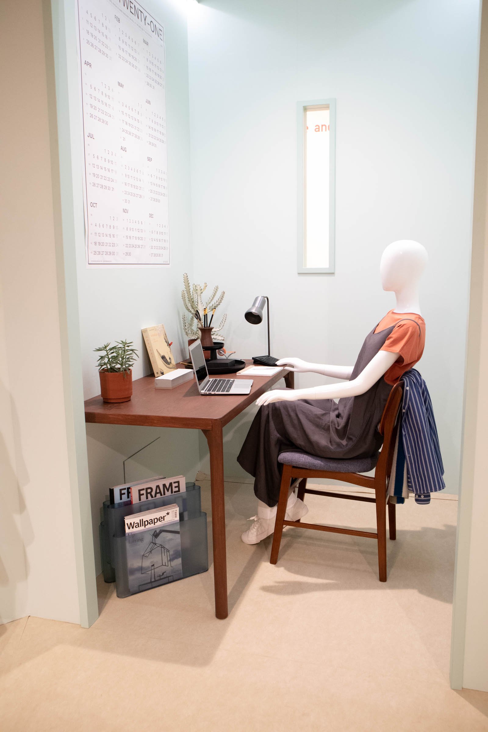 ニューウェアフォーニューライフでは、コロナ禍でオンとオフの境界線が曖昧になったことを受けて、エフォートレスなスタイルのアイテムを打ち出す。ゆったりとしたシルエットのシャツブラウスやウエストゴムのパンツ、キャミソールタイプのワンピース、ストレッチが効いたセットアップなどが揃う。展示会でのマネキンは家の中のシーンをイメージしたものが多く、在宅勤務を想定したコーディネートが並んでいた。