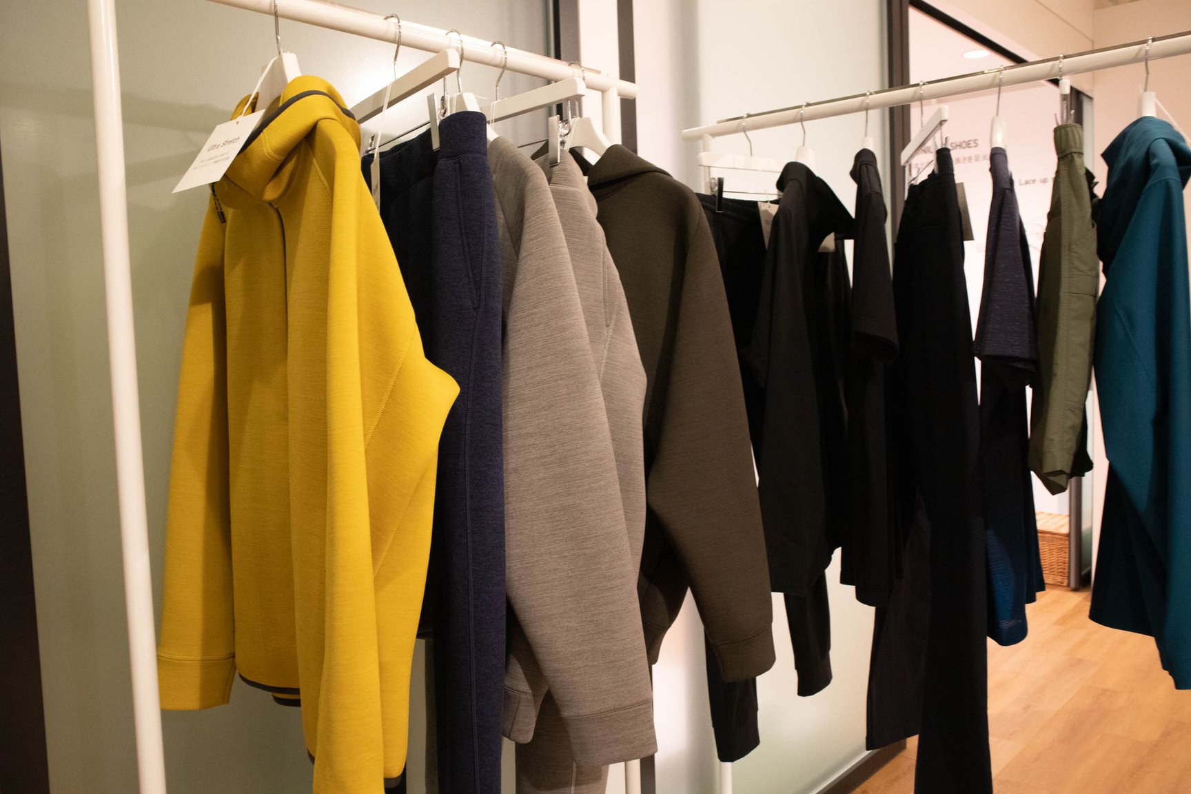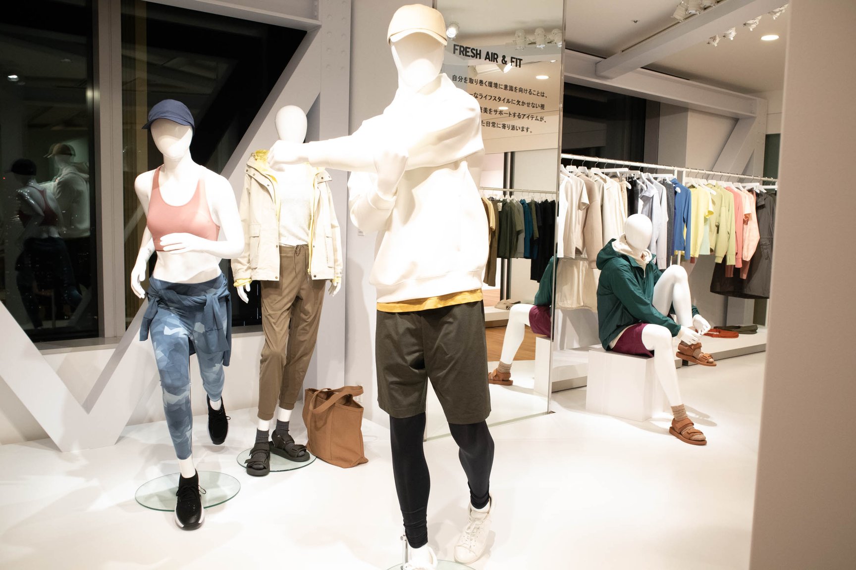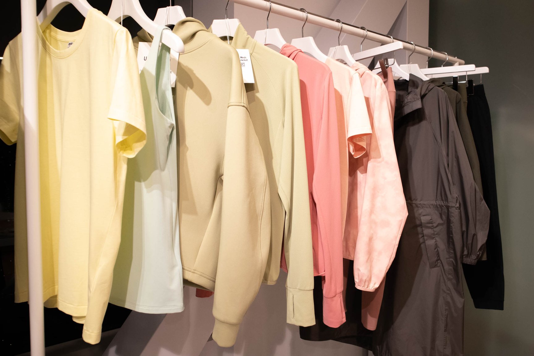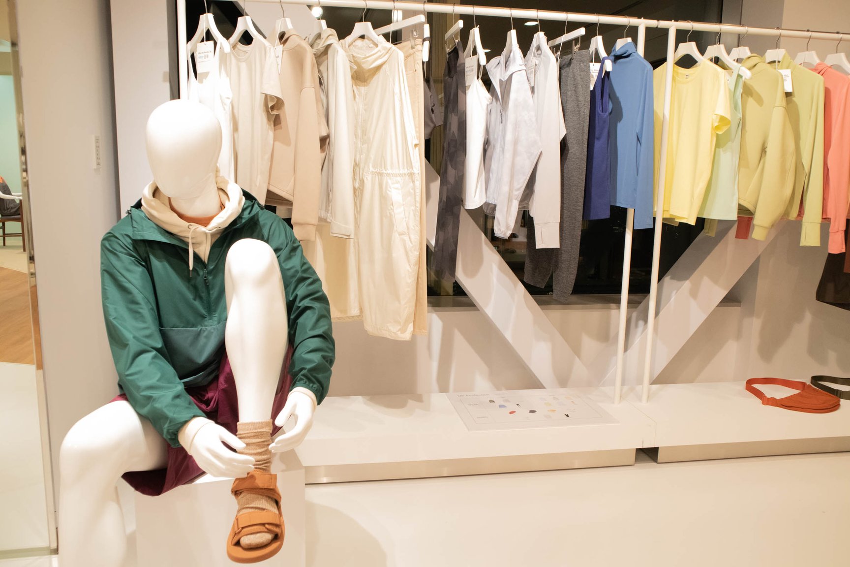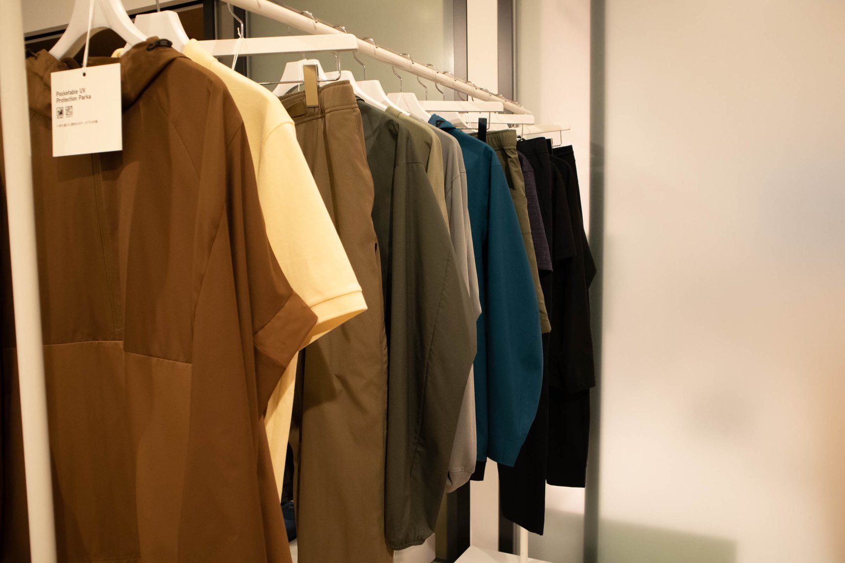 フレッシュエアーアンドフィットでは、コロナ禍で軽い運動する人が増えたことを踏まえて製作したスポーツウェアと、キャンプ向けのコレクションを用意。スポーツウェアではエアリズム素材のインナーやレギンス、スポーツブラなどをラインナップする。キャンプ向けに製作したコレクションは撥水加工を施したアウターやパーカなどをベーシックカラーからパステルカラーまで幅広く揃える。