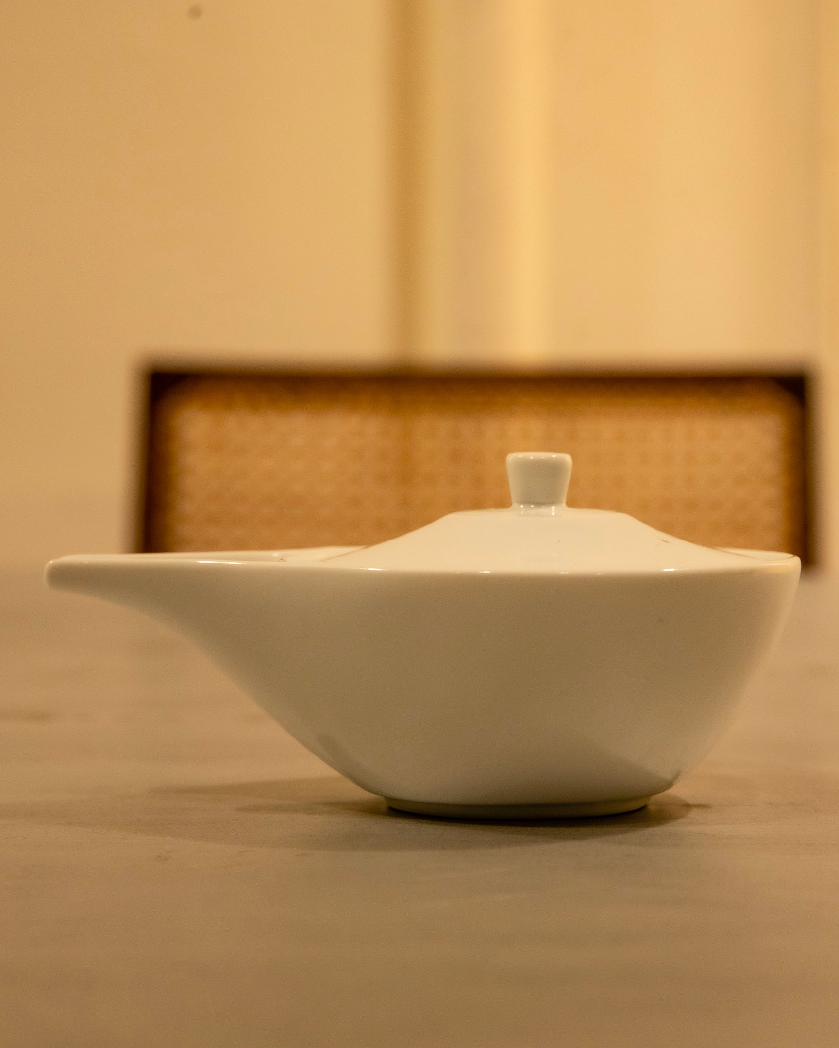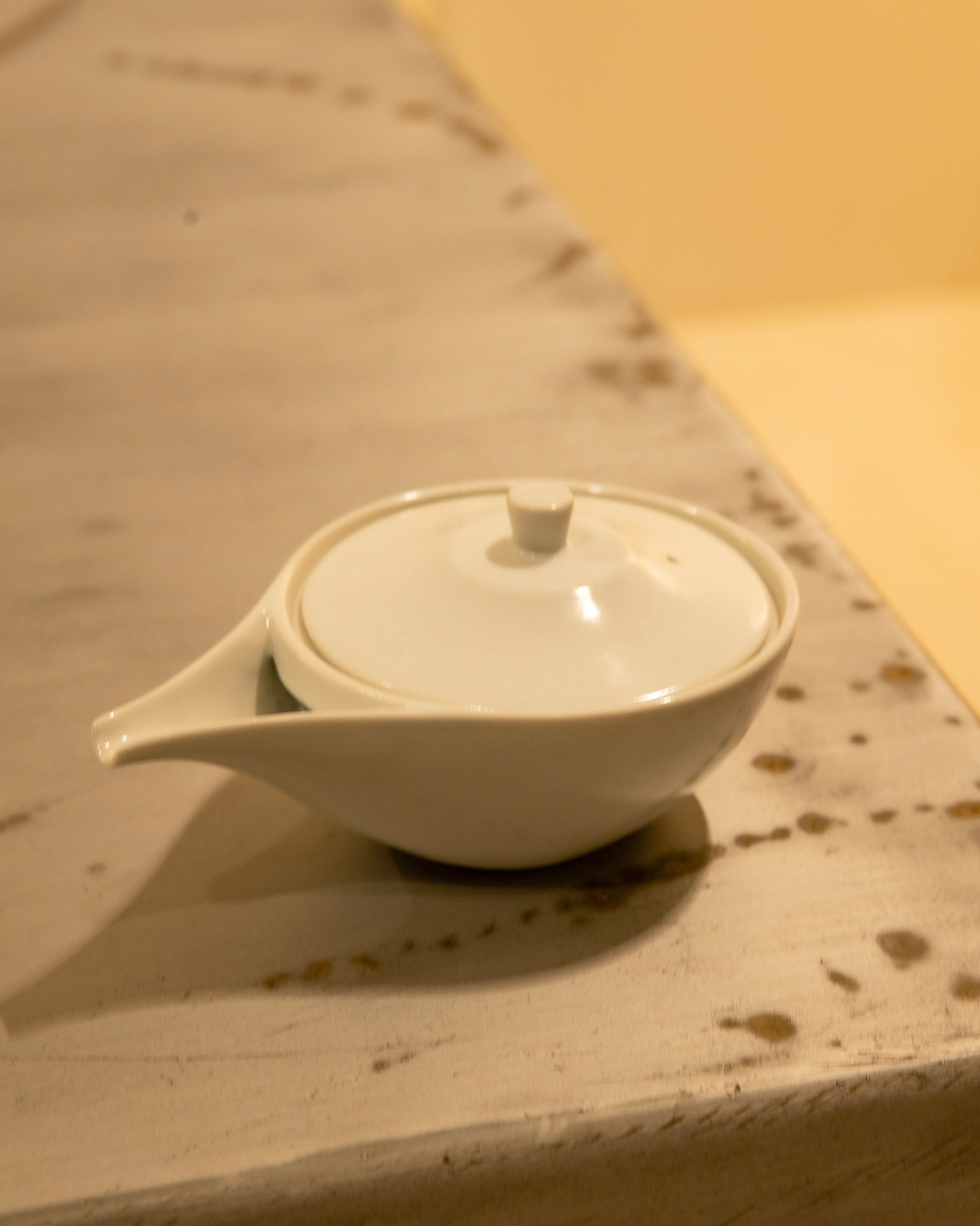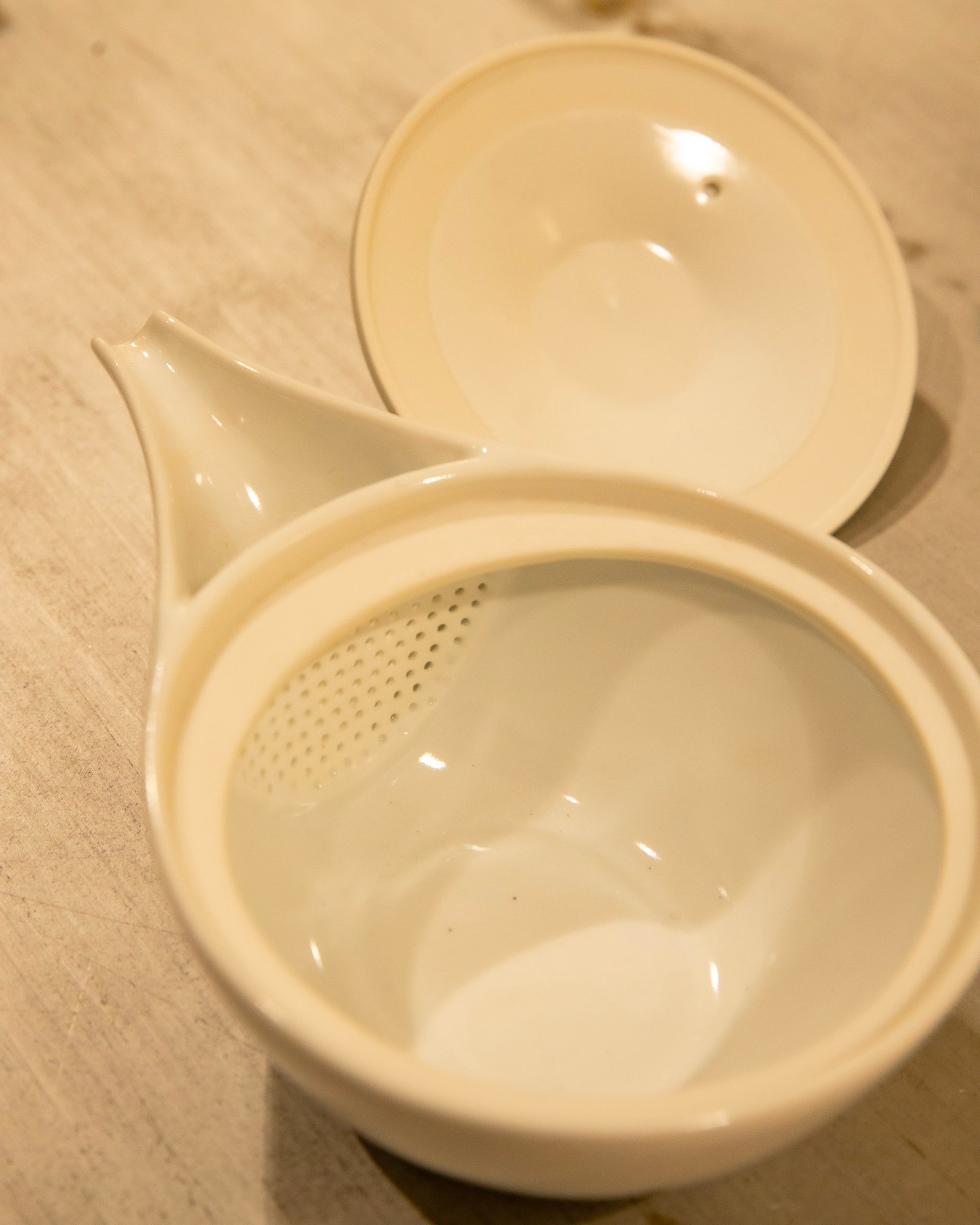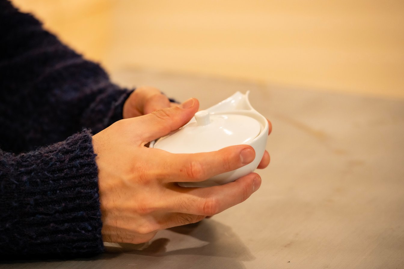 山口:こういう形を宝瓶(ほうひん)というそうなんです。僕は渋谷の茶葉店「幻幻庵」の丸若さんと仲良くさせてもらっているんですが、一緒にプロジェクトをする中で福岡の「万(よろず)」というお茶屋さんを知って、福岡に行く時にはお伺いさせていただいています。これはその万の「白磁宝賓」です。