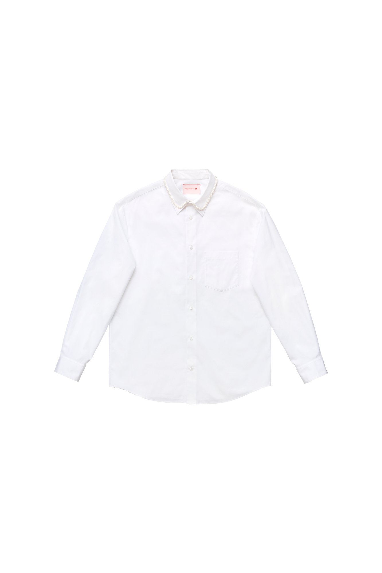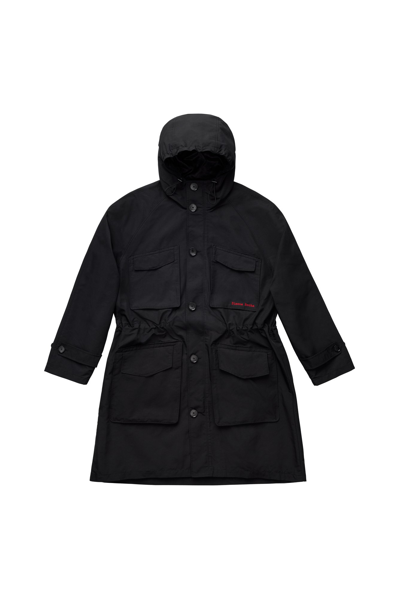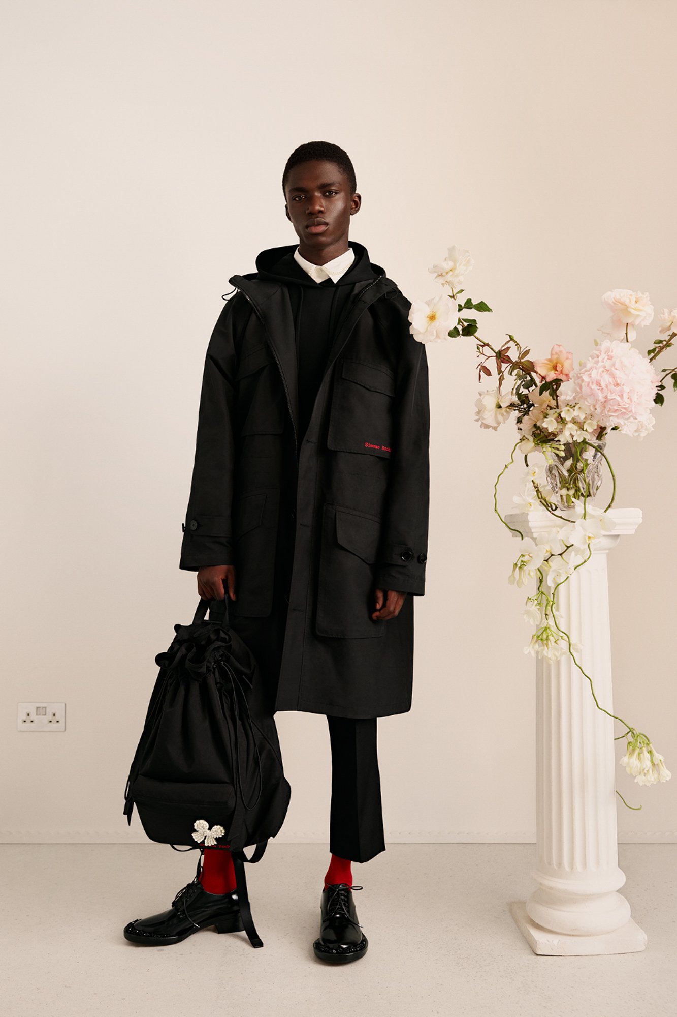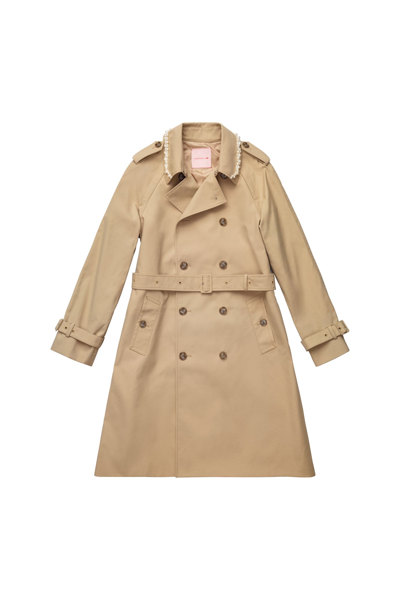 襟にパールの装飾をあしらったトレンチコートをはじめ、オーバーサイズパーカやケーブルニットセーター、カーディガン、シモーン・ロシャと長年コラボしてきたフォトグラファーのヤコブ・リリス(Jacob Lillis)の写真をプリントしたシャツ、パーカ、Tシャツなどが揃う。