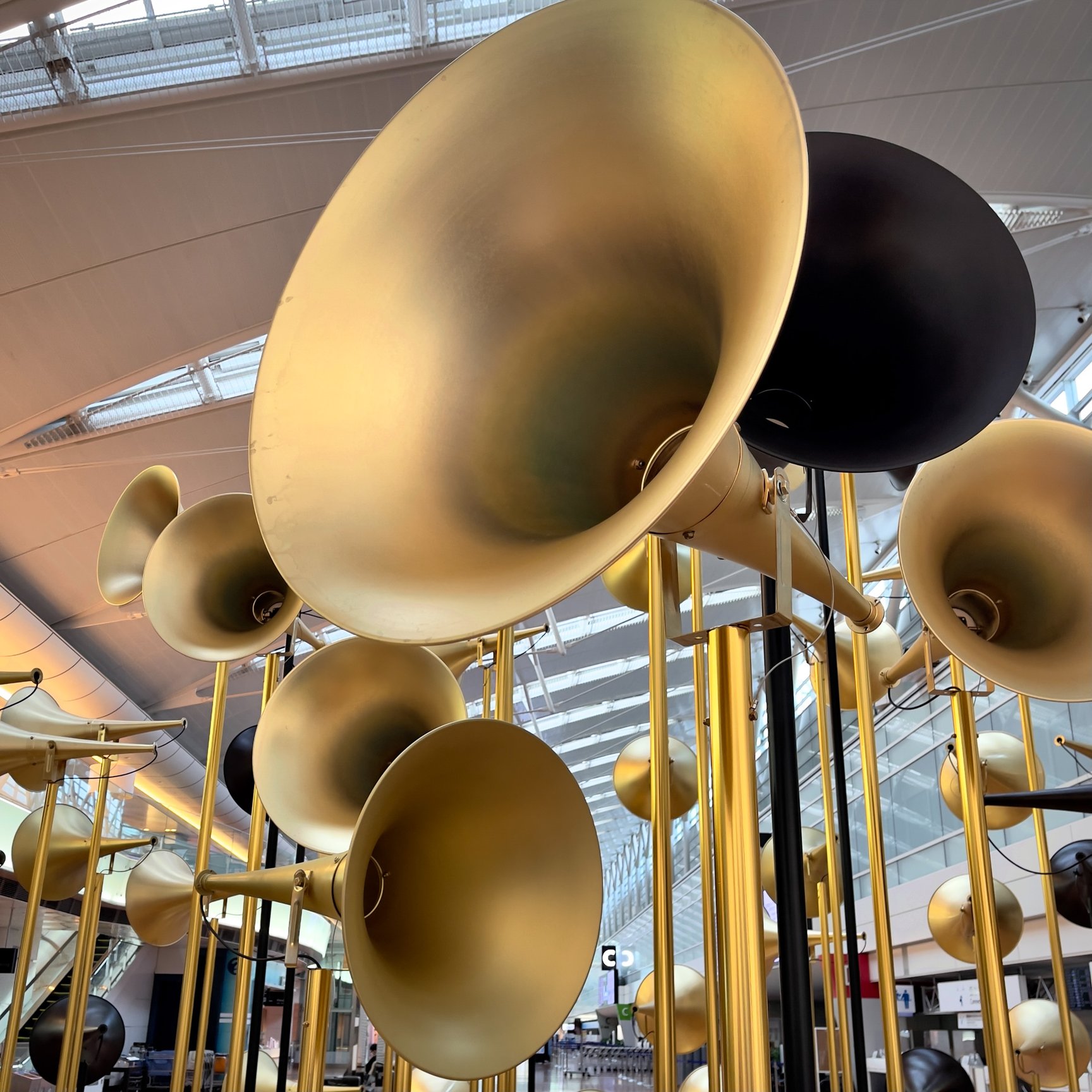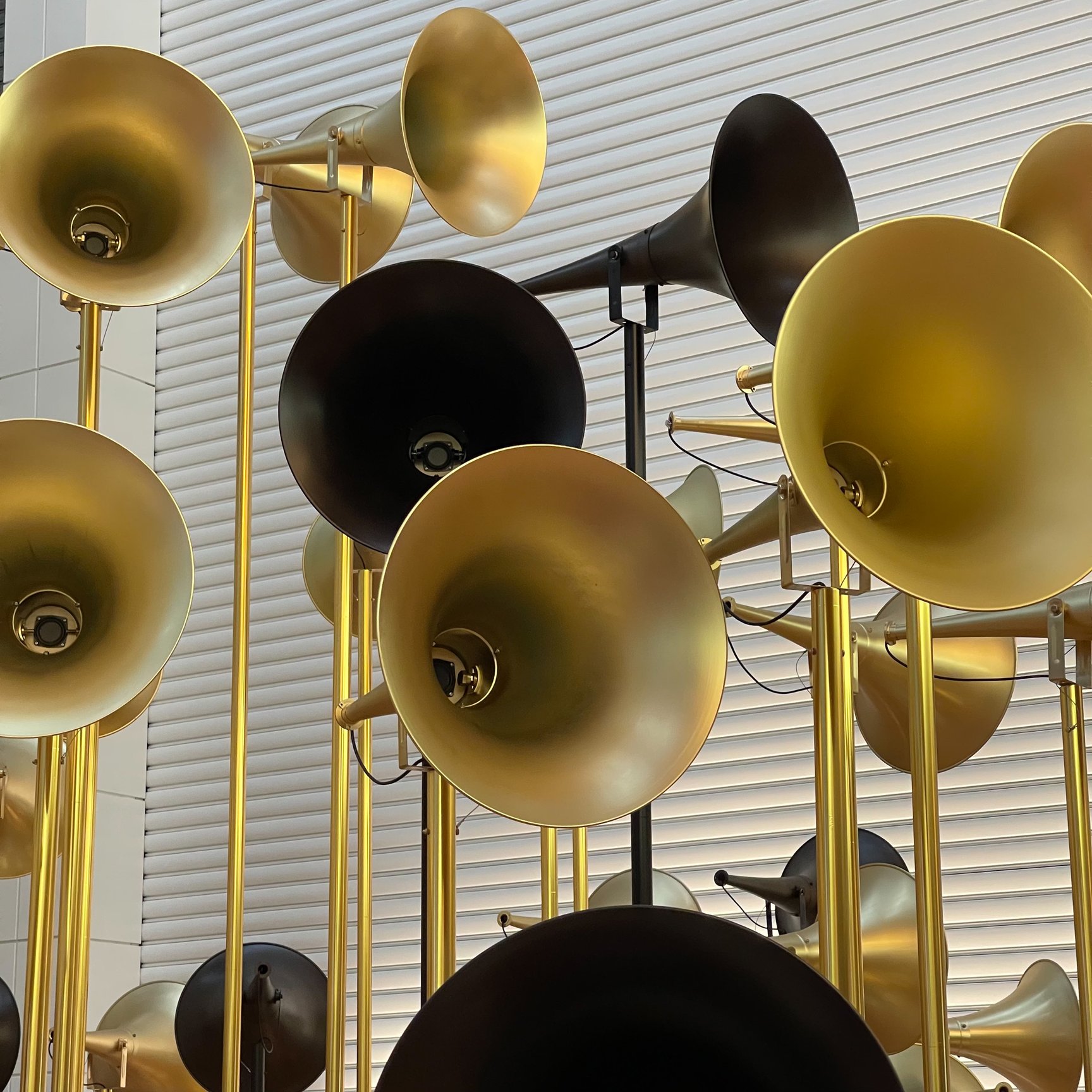 羽田空港第2ターミナルの、まだ一度もオープンしていない国際線搭乗エリアに68個のホーンが置かれている。そこで奏でられているのは、海外からの訪問者の耳に聞こえる意味をなさない日本語の音。