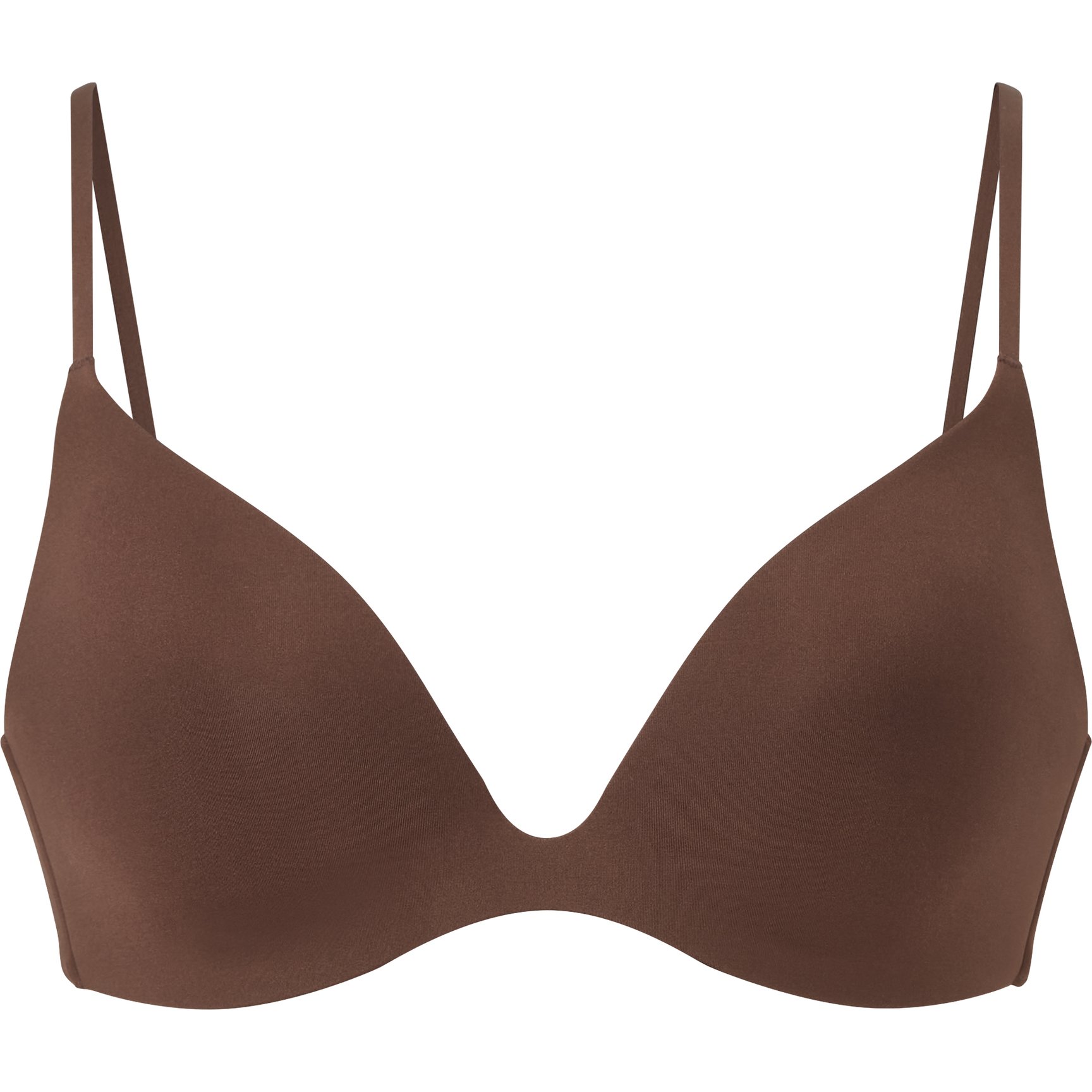 コラボコレクションでは「下着と服の境界線をボーダレスに」をテーマに掲げ、服の下から見えることも前提にデザイン。エアリズムや3Dニットをはじめとしたユニクロの技術と機能性に、マメ クロゴウチを象徴する曲線的なカッティングを組み合わせた。インナーウェアは、ブラとショーツ、ブラトップなど9型をラインナップ。いずれも細いストラップやゴールドのアジャスターなど繊細でラグジュアリーなディテールを取り入れた。カラーは黒、白、ベージュ、ブラウンの様々なスキントーンに合うベーシックカラーで展開する。価格帯は590〜2990。
