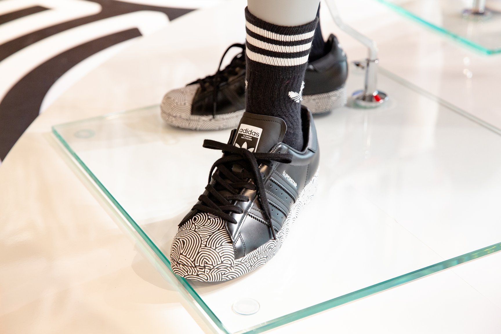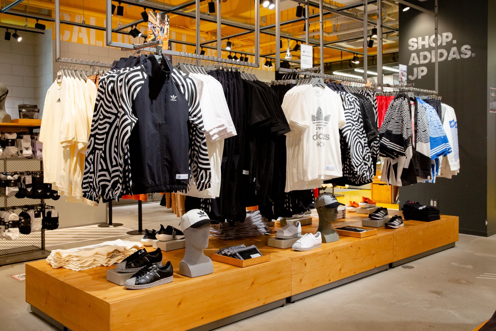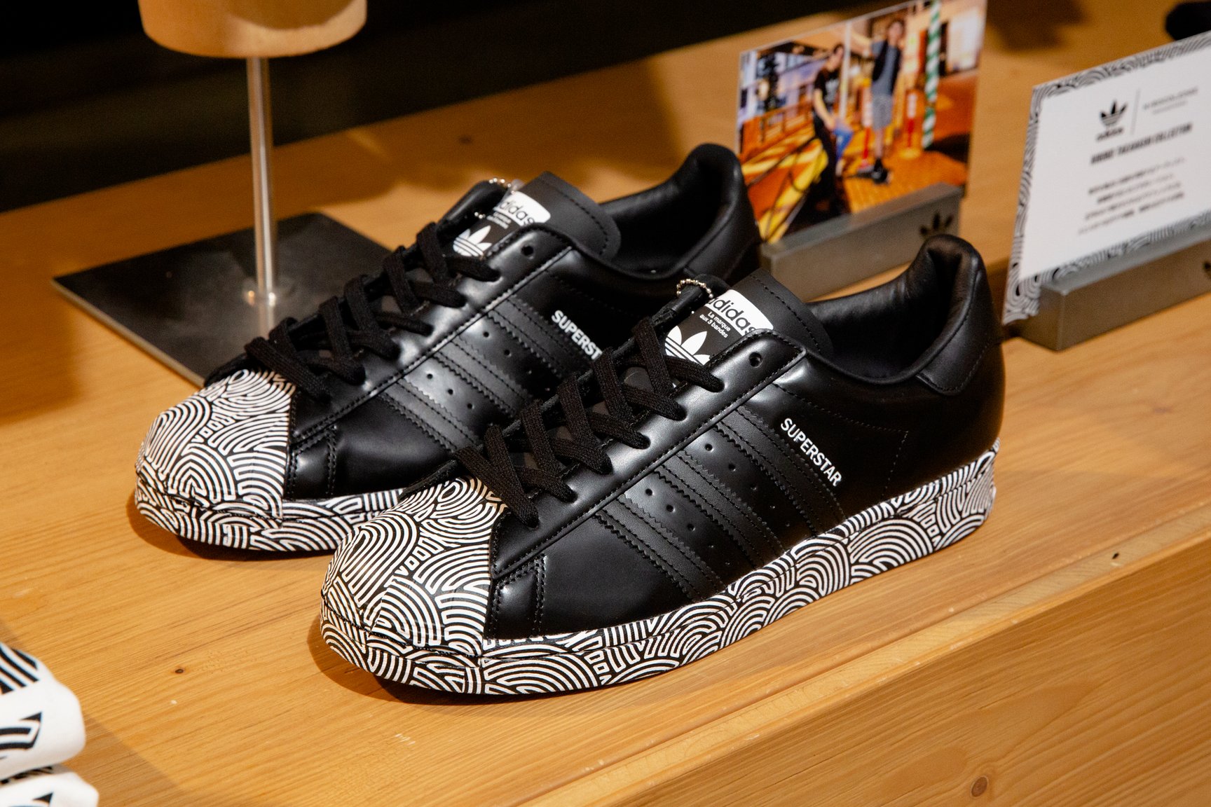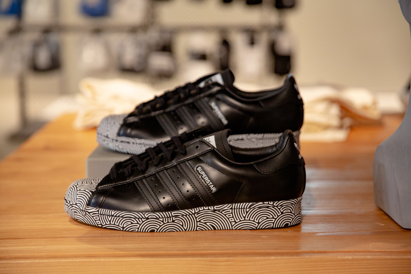 フットウェアは全26型で、アイコニックなスニーカーからサンダルまで幅広く展開。レザーに型押しでグラフィックを施したスタンスミスや、シェルトゥとアウトソールをグラフィックで飾ったスーパースターなど、いずれもソリッドで存在感のある一足となっている。