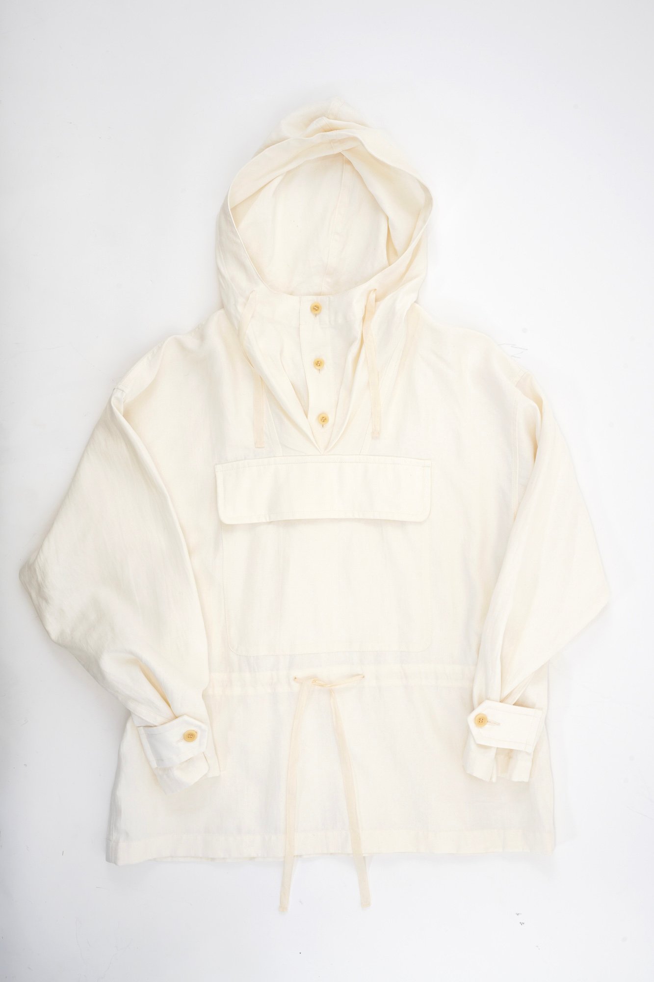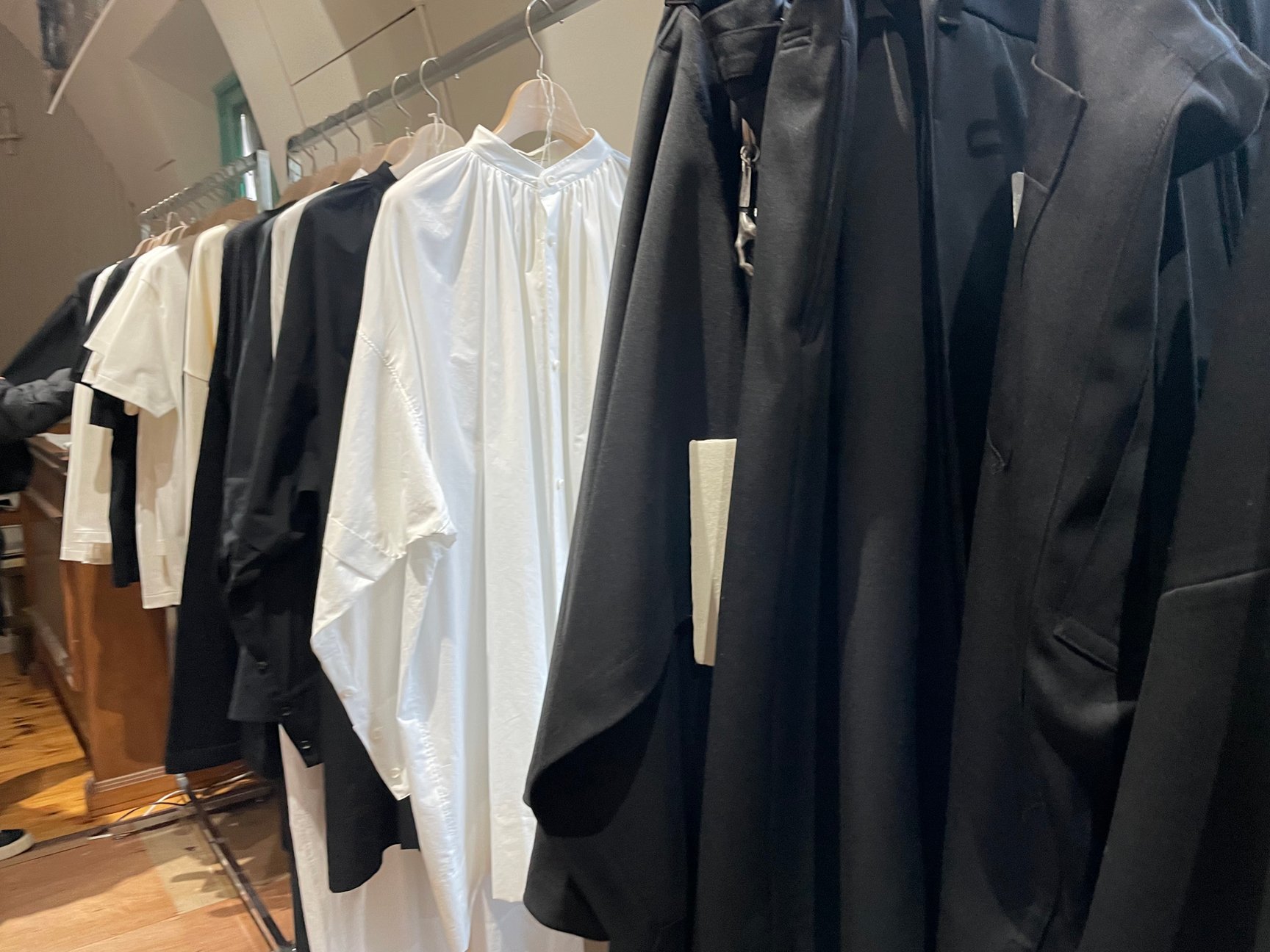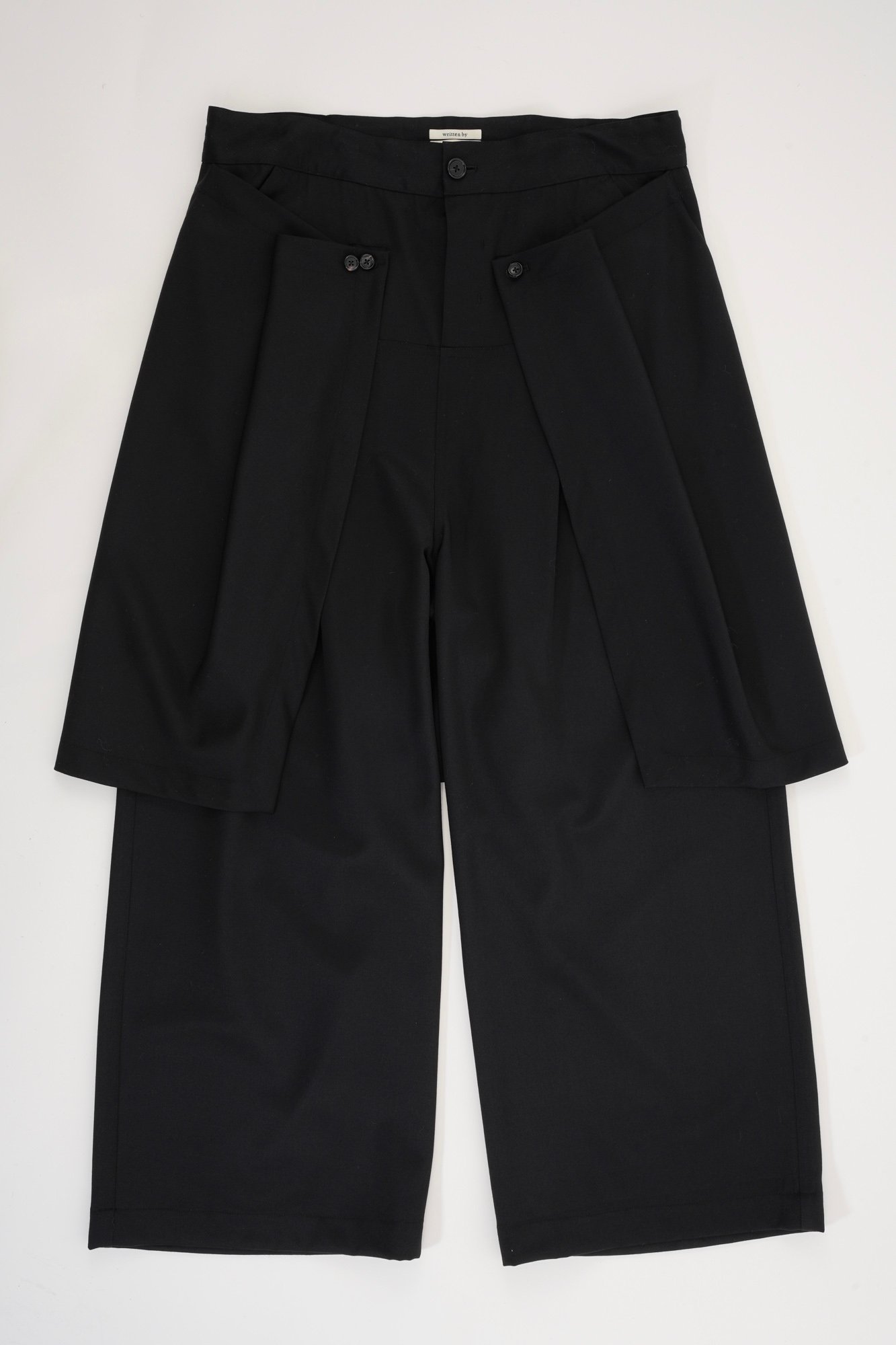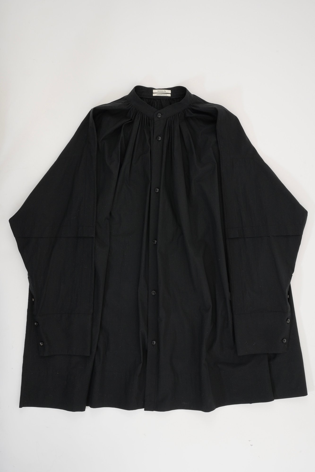 リトゥン バイの新作コレクションは、リトゥンアフターワーズの初期コレクションを彷彿とさせる白と黒で統一。デザインを削ぎ落とした全30型を製作した。白黒で統一した理由として山縣は「長崎に根付いた様々な文化や宗教が複雑に混ざり合って培われた独自の土着的価値観からリサーチを始めたので自然に白と黒になった。またリスタートをするにあたって僕自身の気持ちが1度まっさらな気持ちになったため、それを反映するかのように色を取り入れたくないという気持ちが強かった」とし、続けて「今回のデザインは僕だけではなく、チーム全員の意見を取り入れながら製作されたもの」と強調。新作コレクションではほとんどのアイテムで天然繊維が用いられており、ペーパー加工が施されたシャツなどをラインナップ。そのほか、靴下やマフラー、山縣の手を模したキーホルダーなどの小物アイテムも用意する。