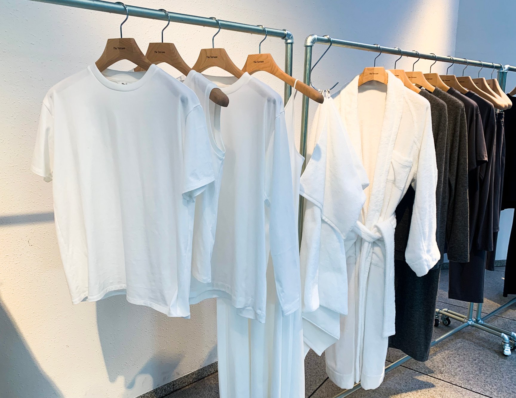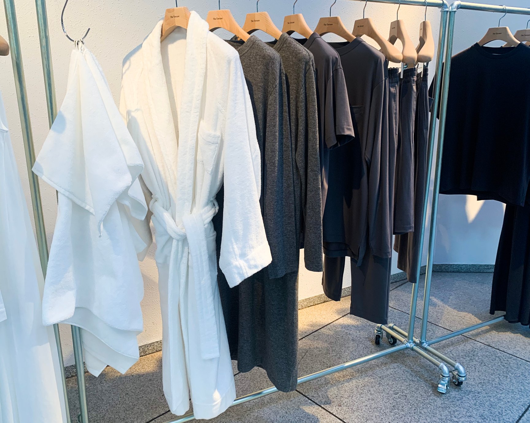 「ザ・テラス」がウェアの製作において目指すのは、日中の活動中も睡眠中も「着ている人の心が落ち着く服」。着用者がリラックス状態でいられる着心地の良さを追求している。室内だけではなくワンマイルウェアとしても着られるカットソーやパンツをはじめ、カーディガン、バスローブ、コートなどを揃える。素材にはオーガニックコットン、ウール、カシミヤなどを使用。カットソーにはエイガールズの生地が採用されているという。