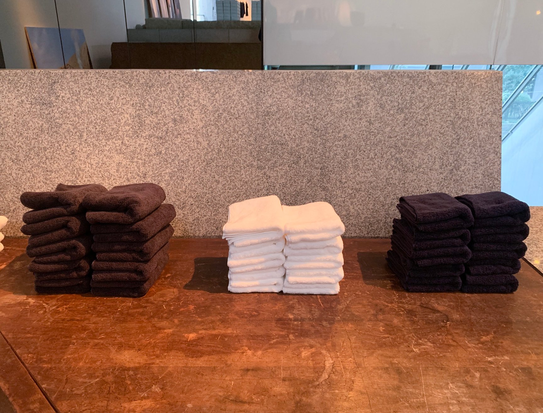 生活の中で毎日使うものの一つであるタオルは、肌に触れた際の心地良さや吸水性の高さが要となる。今回、ザ・テラスがタッグを組んだのは愛媛県今治市にある創業50年以上の歴史ある小さなタオルメーカー。原料の綿花や糸の太さ、重さなどを変えて作り分けた、それぞれ異なる特徴を持った2種類のタオルを完成させた。アメリカ・カリフォルニア州サンホーキンバレーで育った綿花を使用した、密度の詰まった柔らかさが特徴の「Extra Soft」シリーズ、ウズベキスタン・フェルガナ盆地で栽培される綿花を使用した、しっかりとした拭き心地と柔らかさを兼ね備えた「Extra Volume」シリーズを用意する。価格はフェイスタオルが2500〜3000、バスタオルが9000〜1万2000。