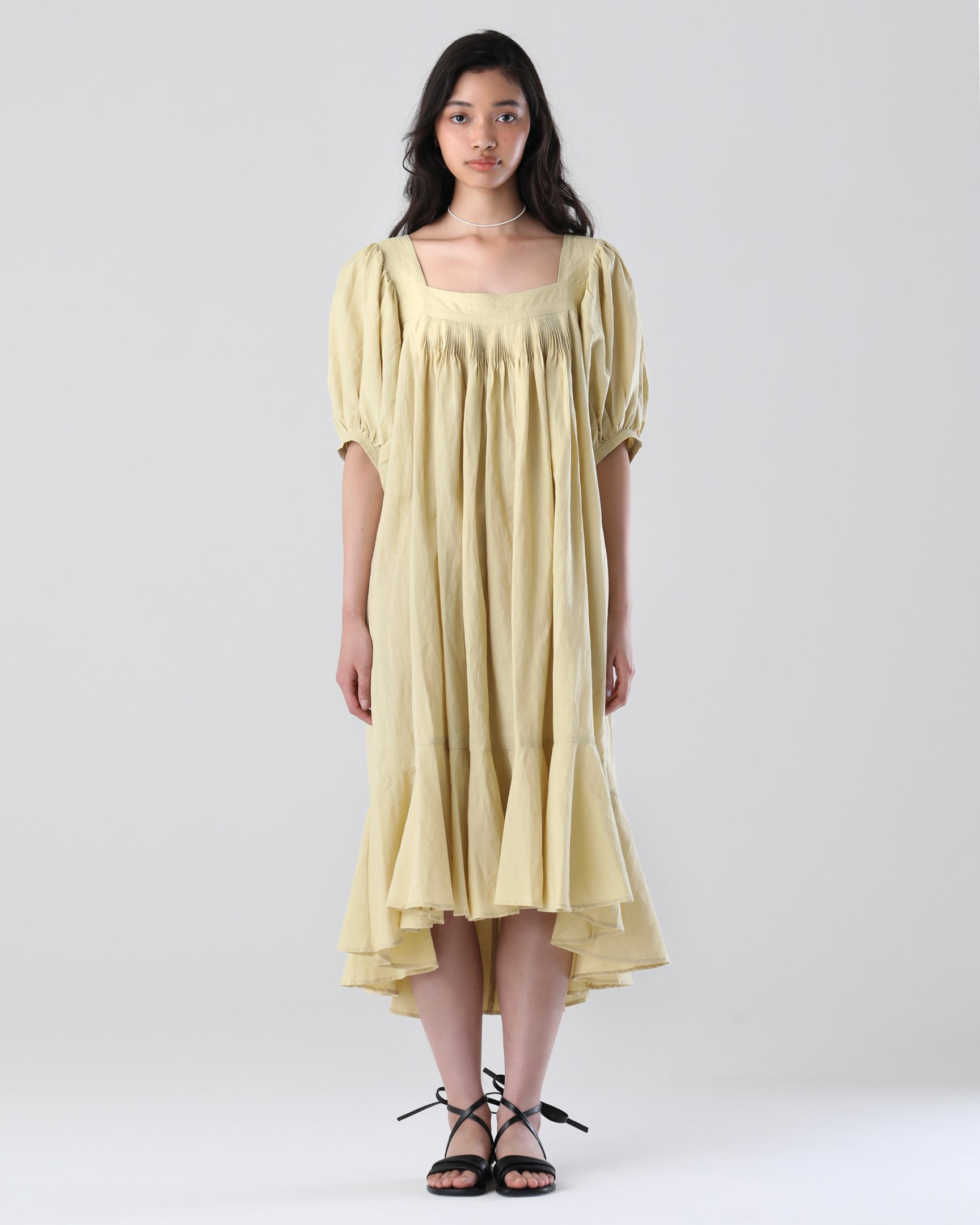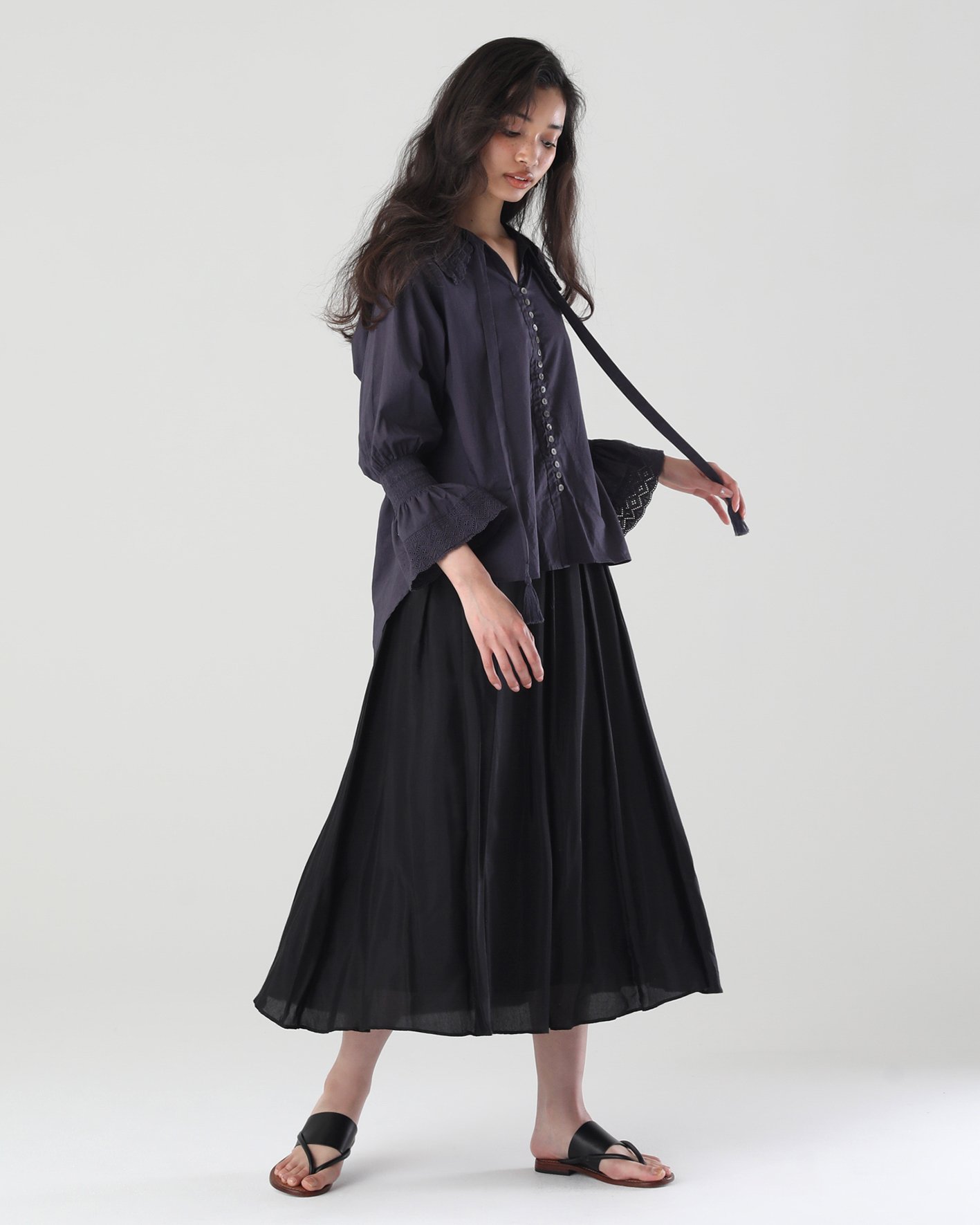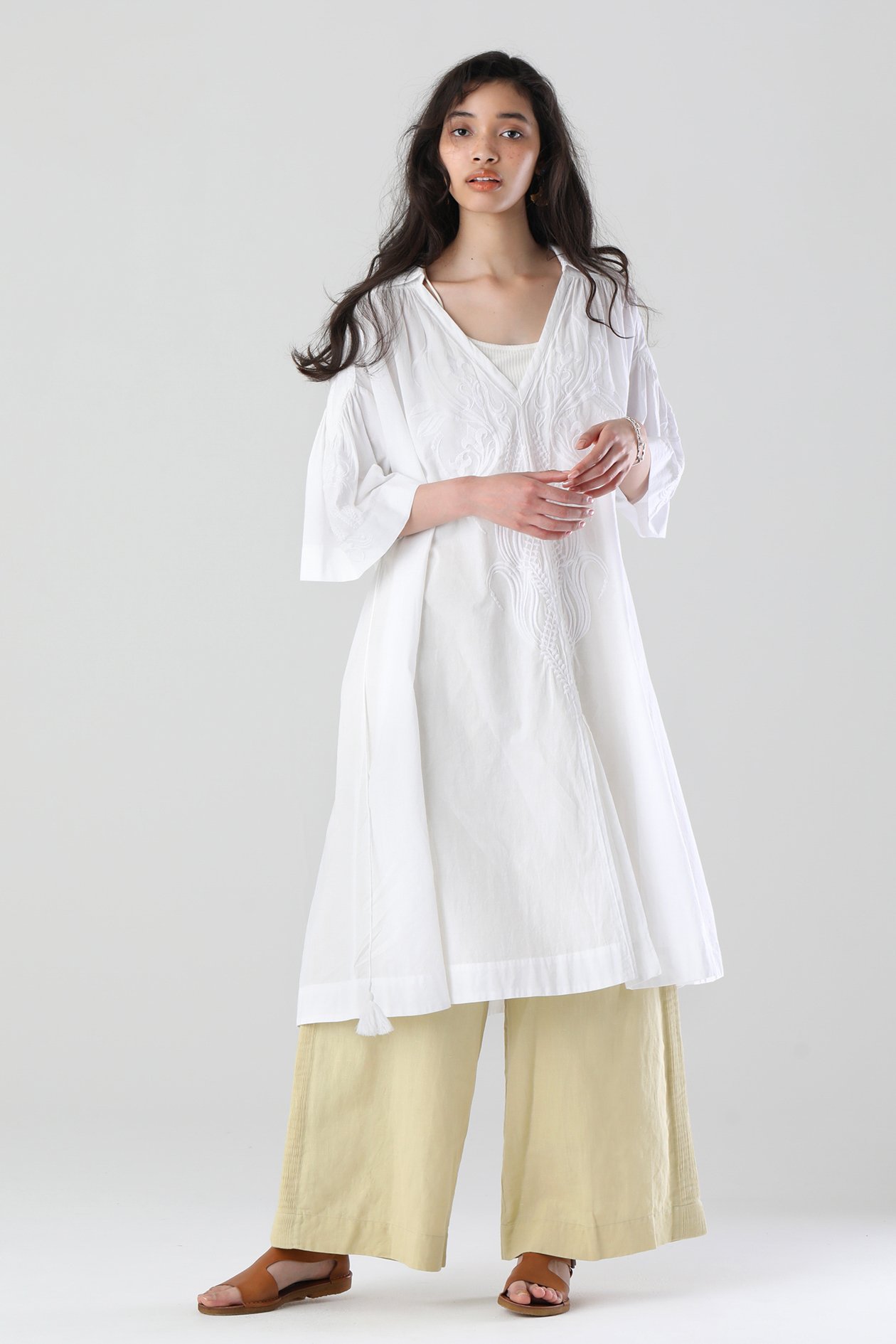 ファーストコレクションでは、オーガニックコットンの国際基準であるGOTS認証を満たした綿花のみを採用。染色などの加工工程も環境に配慮した方法を工夫し、「エンブロイダリーワンピースドレス」(2万8600)や「エンブロイダリースカート」(2万6400)、「ピンタックボタンシャツ」(2万900)、「アップリケ ギャザースカート」(2万4200)、「スカラップシフリー Vネックドレス」(3万5200/すべて税込)などをラインナップする。