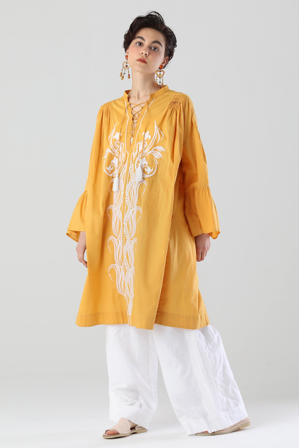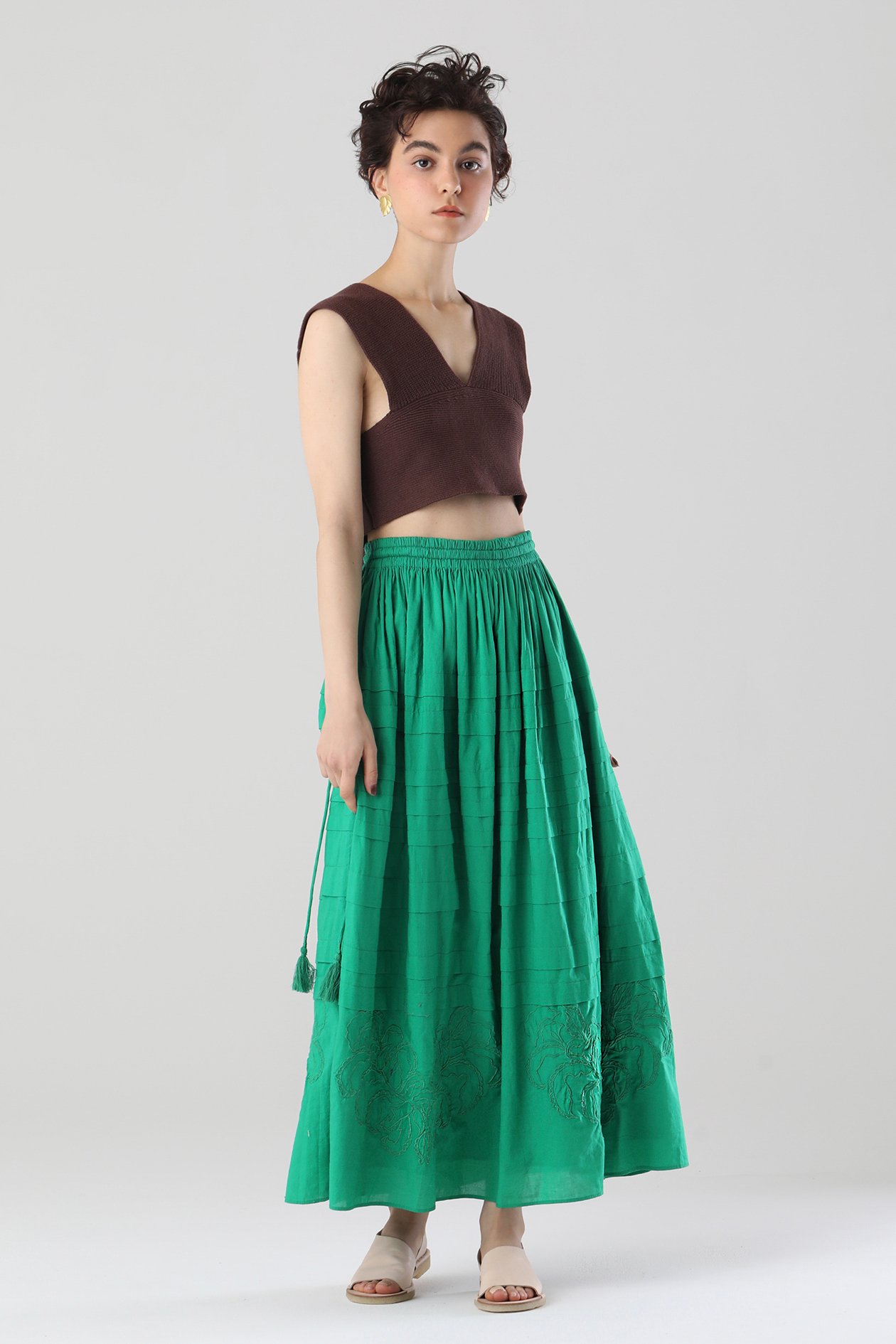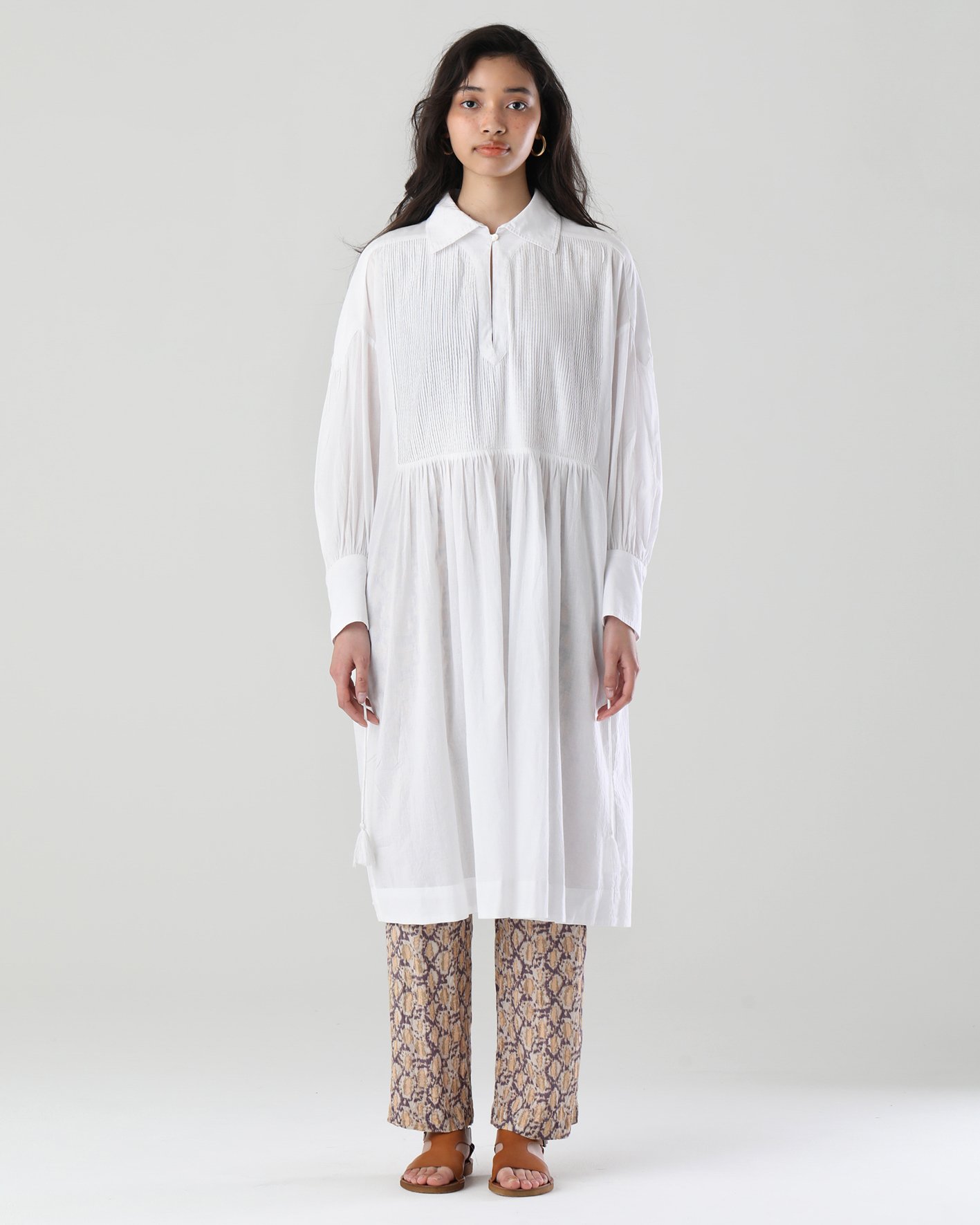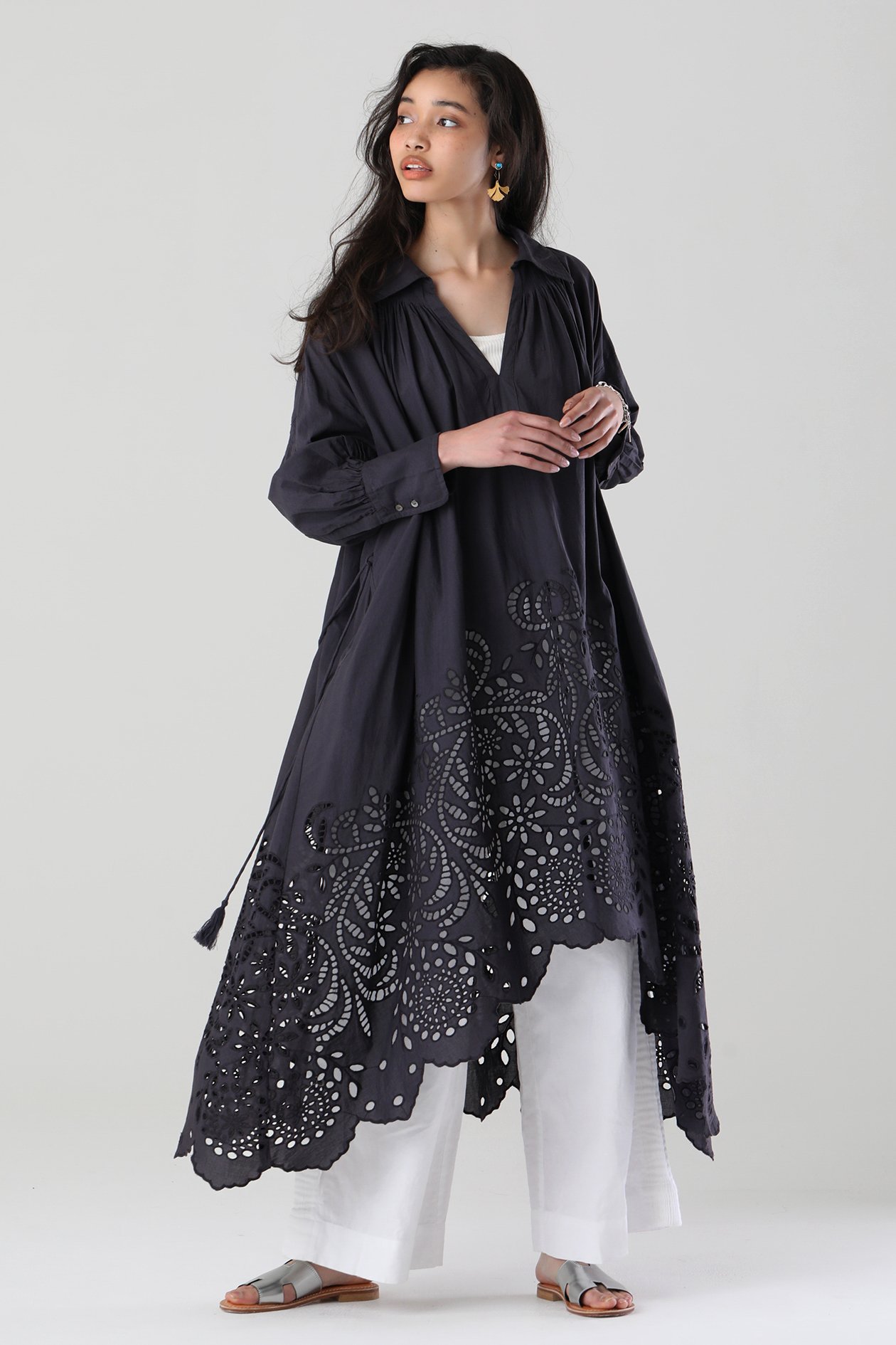 ファーストコレクションでは、オーガニックコットンの国際基準であるGOTS認証を満たした綿花のみを採用。染色などの加工工程も環境に配慮した方法を工夫し、「エンブロイダリーワンピースドレス」(2万8600)や「エンブロイダリースカート」(2万6400)、「ピンタックボタンシャツ」(2万900)、「アップリケ ギャザースカート」(2万4200)、「スカラップシフリー Vネックドレス」(3万5200/すべて税込)などをラインナップする。