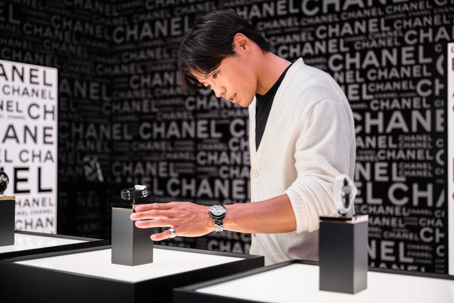 カプセルコレクションは、今春スイスで開催された「Watches and Wonders Geneva 2022」で発表。メゾンを代表するアイコンモデルに、「CHANEL」の6文字のグラフィックをデザインに落とし込んでいる。コレクションは、CHANELの文字が繊細に敷き詰められた33mmのホワイトセラミックと、ロゴが大胆にデザインされた38mmのブラックセラミックの「J12」、CHANELのアルファベットチャームが揺れる「プルミエール ウォンテッド ドゥ シャネル」、ストラップにCHANELの6文字を配した「コード ココ ウォンテッド ドゥ シャネル」と「ボーイフレンド ウォンテッド ドゥ シャネル」のいずれも数量限定の5モデル。ロゴが映し出されたイベント会場には、コレクション名の"WANTED"にちなみ、パネルに手をかざし、"この時計を手に入れたい度合い"を測定する装置を設置。ゲストはコレクションの世界観が表現された空間で、ディスプレイされた新作を鑑賞した。