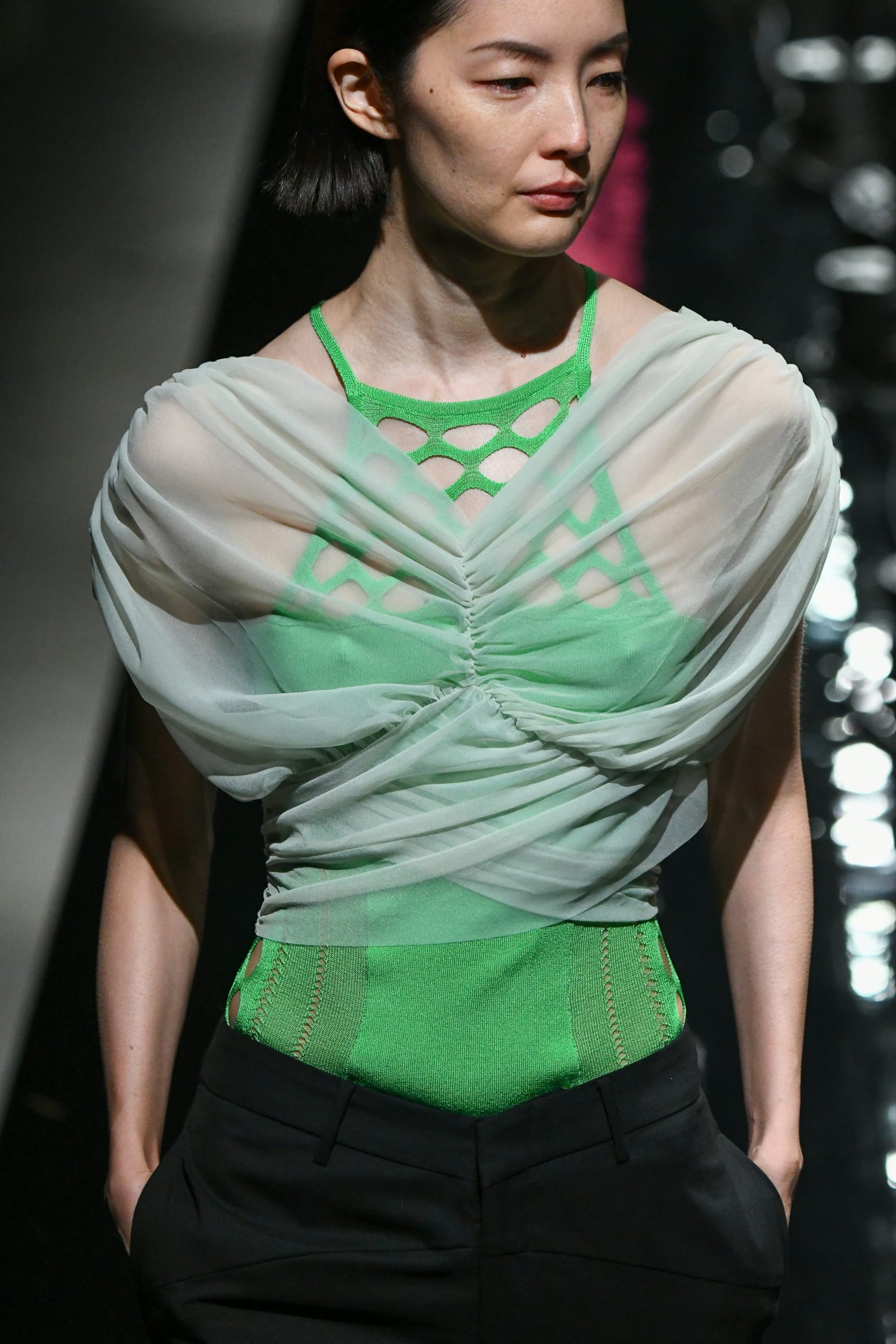 ショーの作り、モデルの選び方やメークアップ、抑制のきいたウォーキング、サックスを使った独特の音楽が気に入ったからなのかもしれない。手の込んだレースやニットなど服の素材の硬質さが、肌の露出を抑制しているのかもしれない。