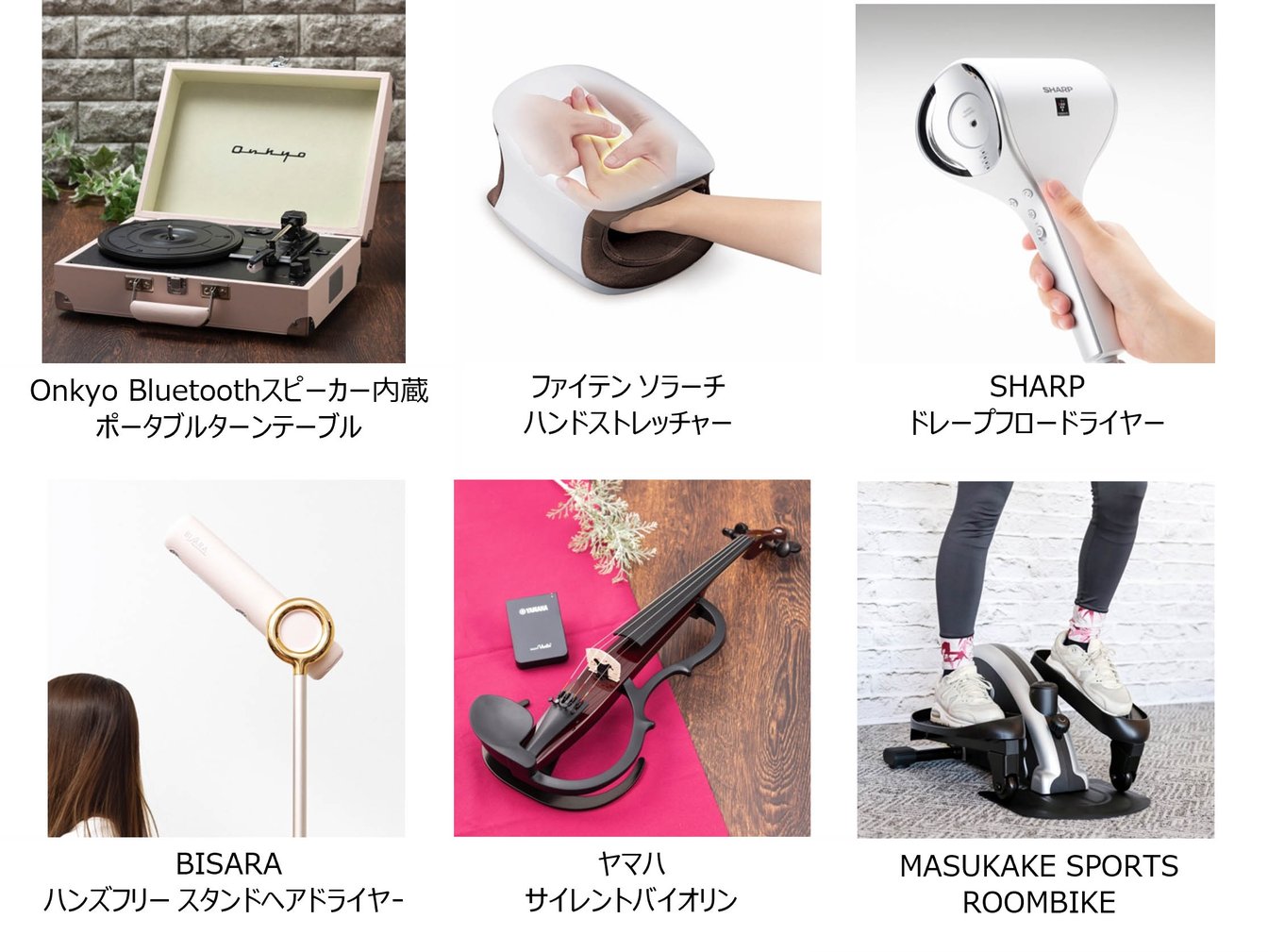 イベントでは、音響機器メーカー「オンキヨー(Onkyo)」のターンテーブルスピーカーをはじめ、「シャープ(SHARP)」のドライヤーや、「ヤマハ(YAMAHA)」のサイレントバイオリン、「マスカケスポーツ(MASUKAKAE SPORTS)」のルームバイクなどをラインナップ。会場内に展示される商品の一部はアリスプライムに同時出品されており、アリスプライムを通じて商品のレンタルができるようになっている。今回の協業で、店舗に訪れないと商品の試用や購入が出来なかった従来の体験に「気軽に借りる」という選択肢を加えることで、新たな体験価値を提供したい考えだ。