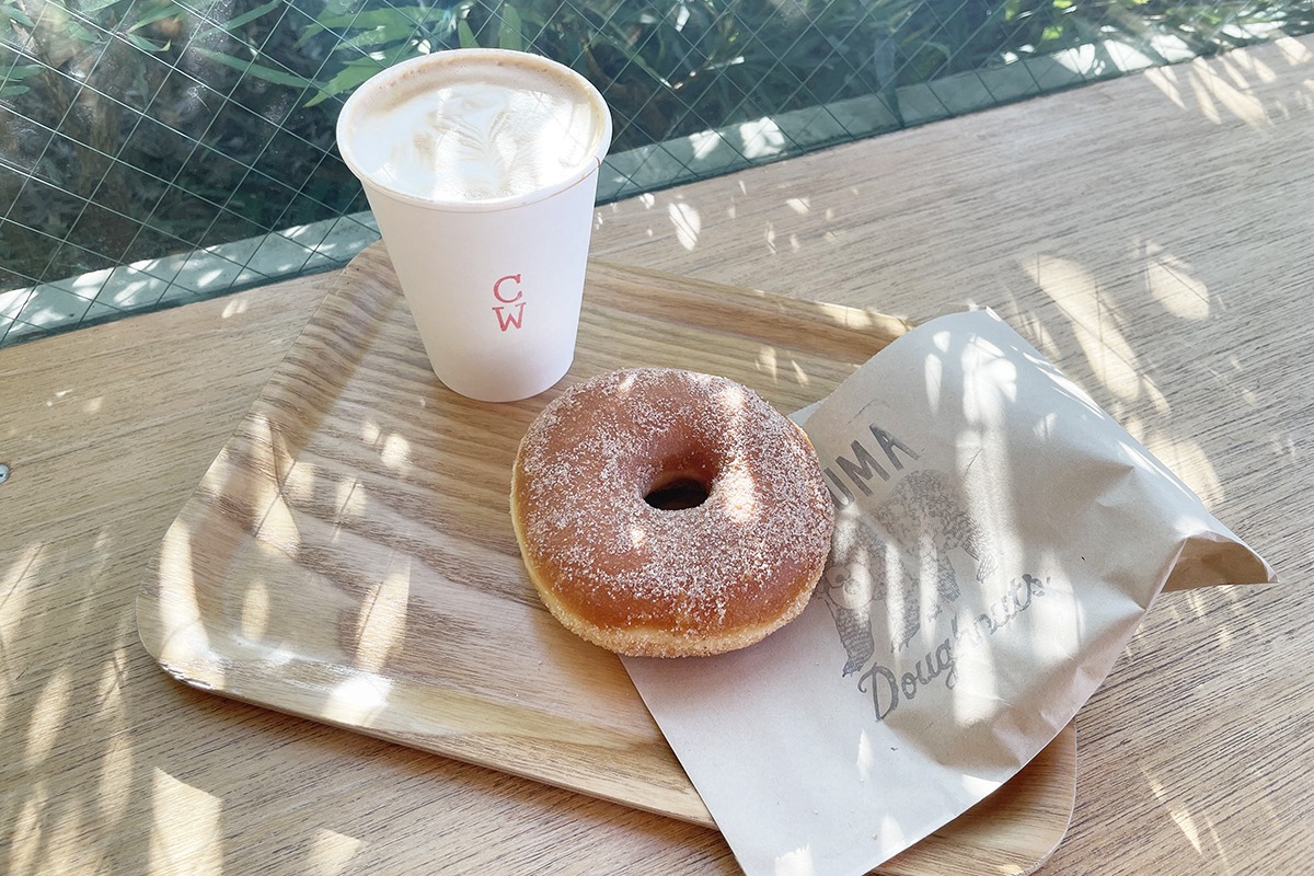 「ドーナツ×コーヒー」はいうまでもなく、最高の組み合わせ。食べる前からテンションが上がる!木漏れ日に照らされて、神々しさすら感じる。さっそくいただきます!